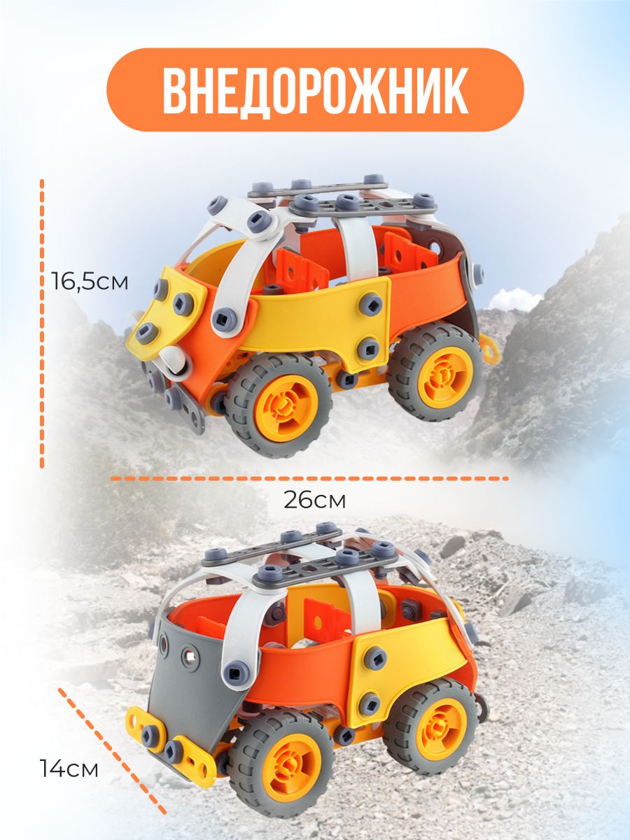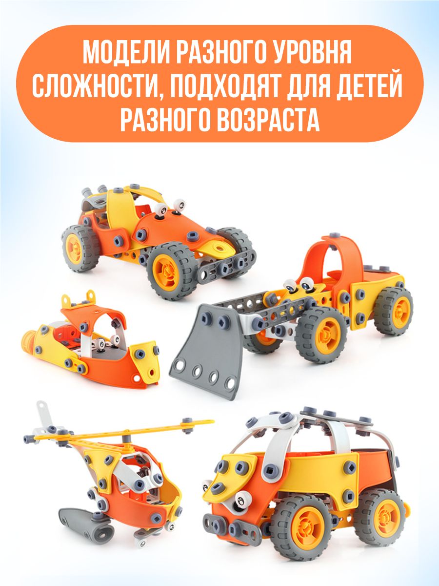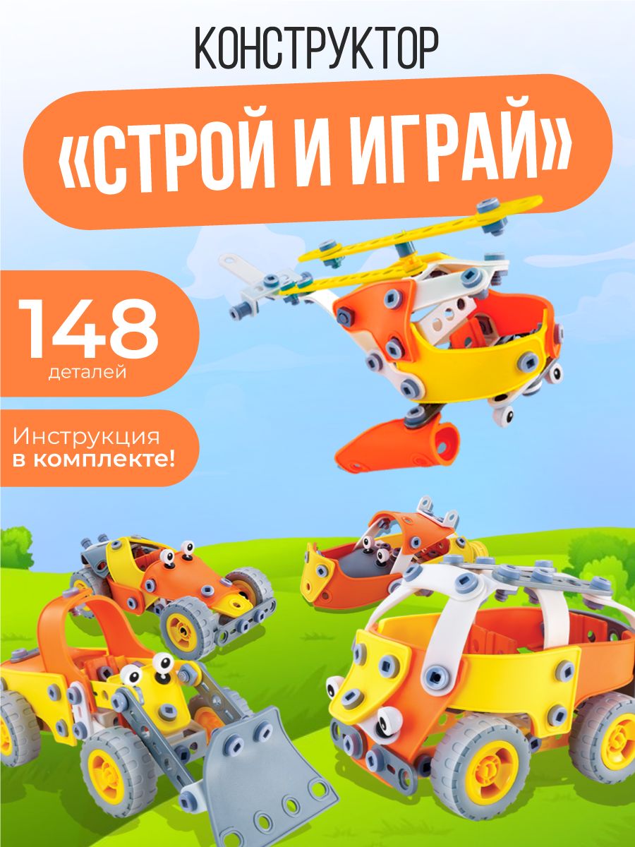 Описание: Конструктор “Строй и играй” - это увлекательный детский набор из 148 элементов в комплекте, которые позволят ребенку создавать разные транспортные модели.