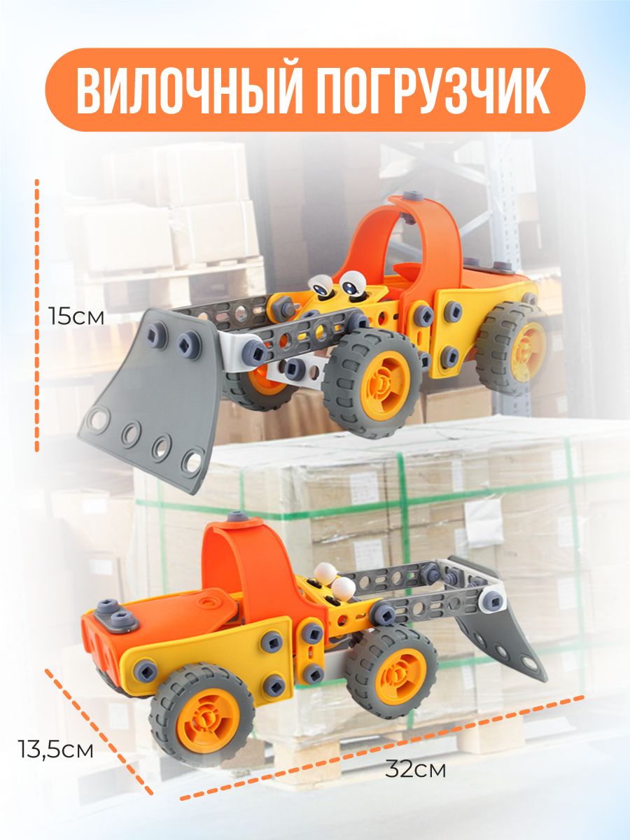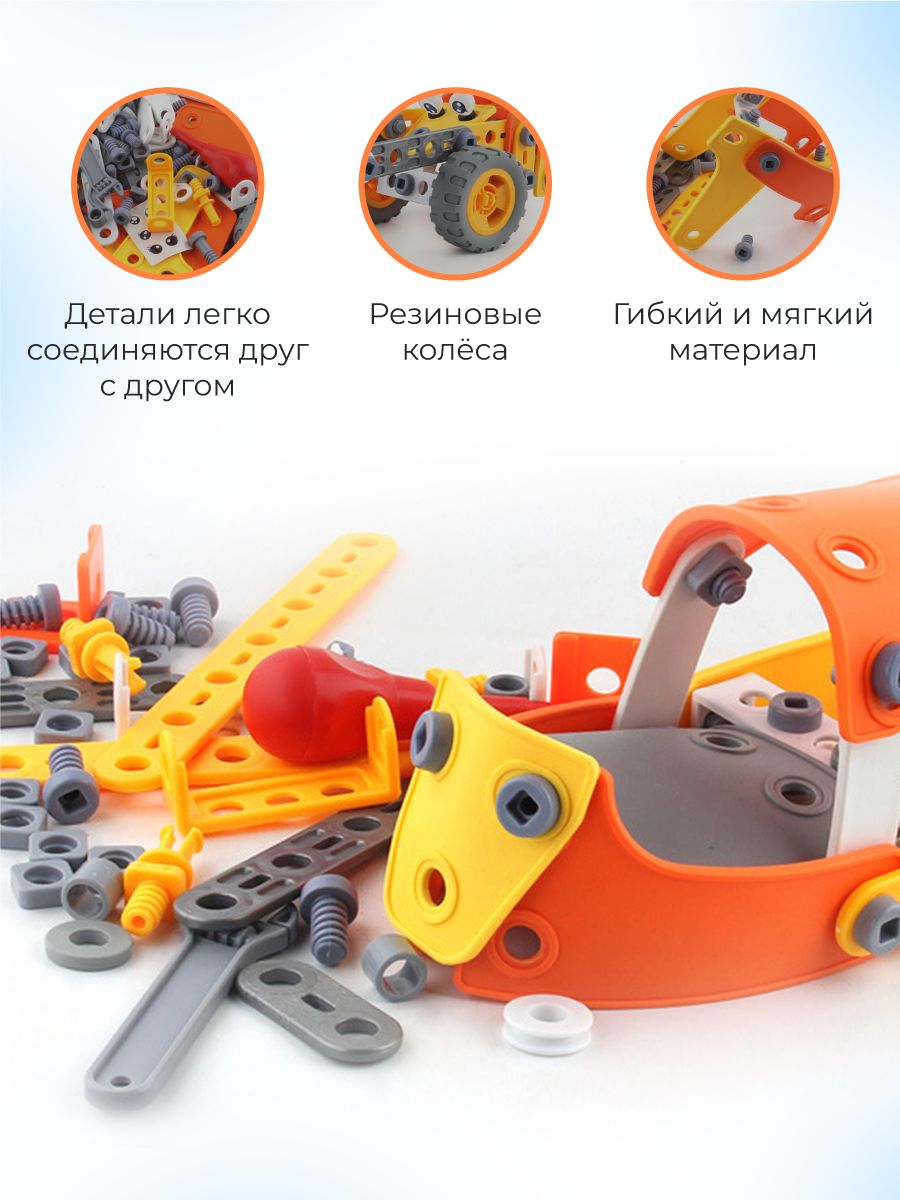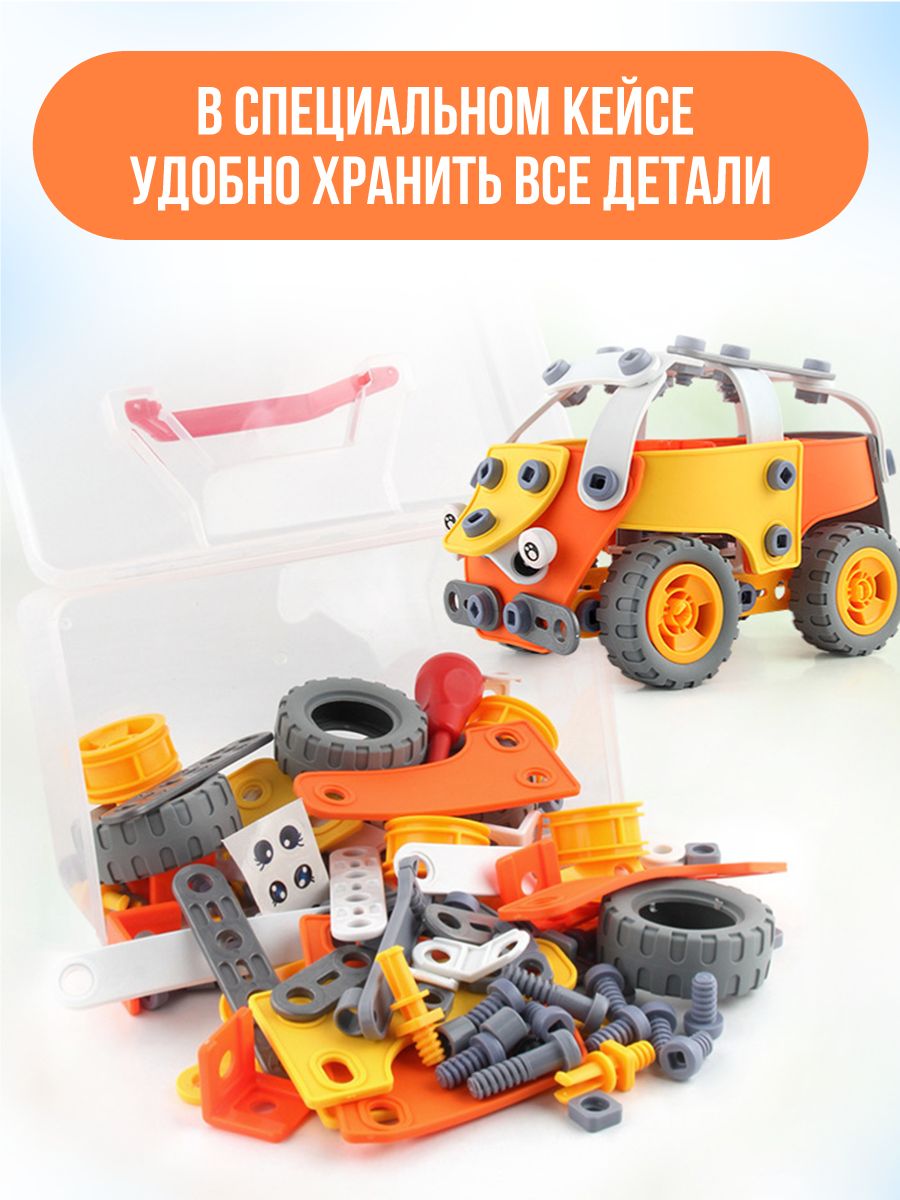 Конструктор развивающий крупный моделирующий 148 элементов машина для малышей TURBOSKY Лёлик Строй и играй / Винтовой большой детский пластиковый конструктор с отвёрткой для девочек и мальчиков 3+