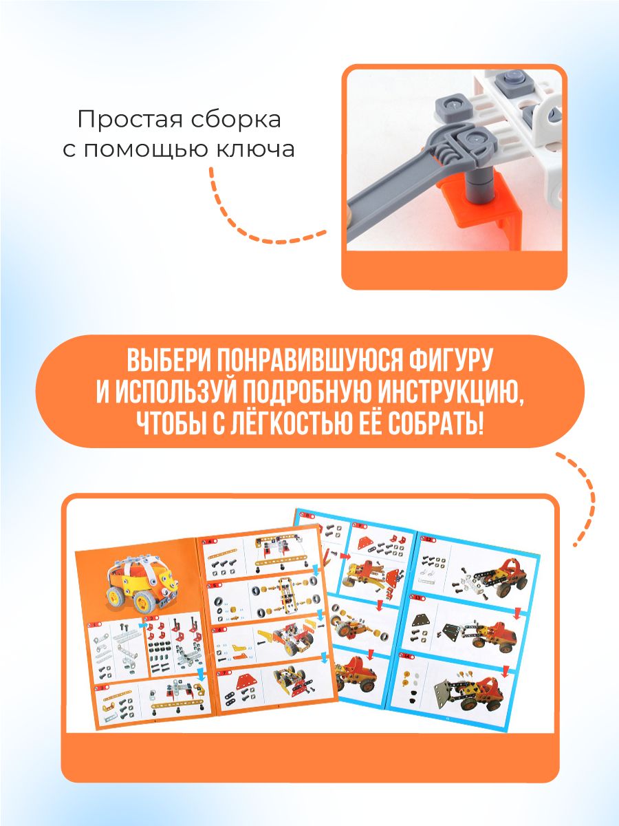 В комплекте есть подробная инструкция, которая поможет вашему ребенку собрать транспортную модель мечты!