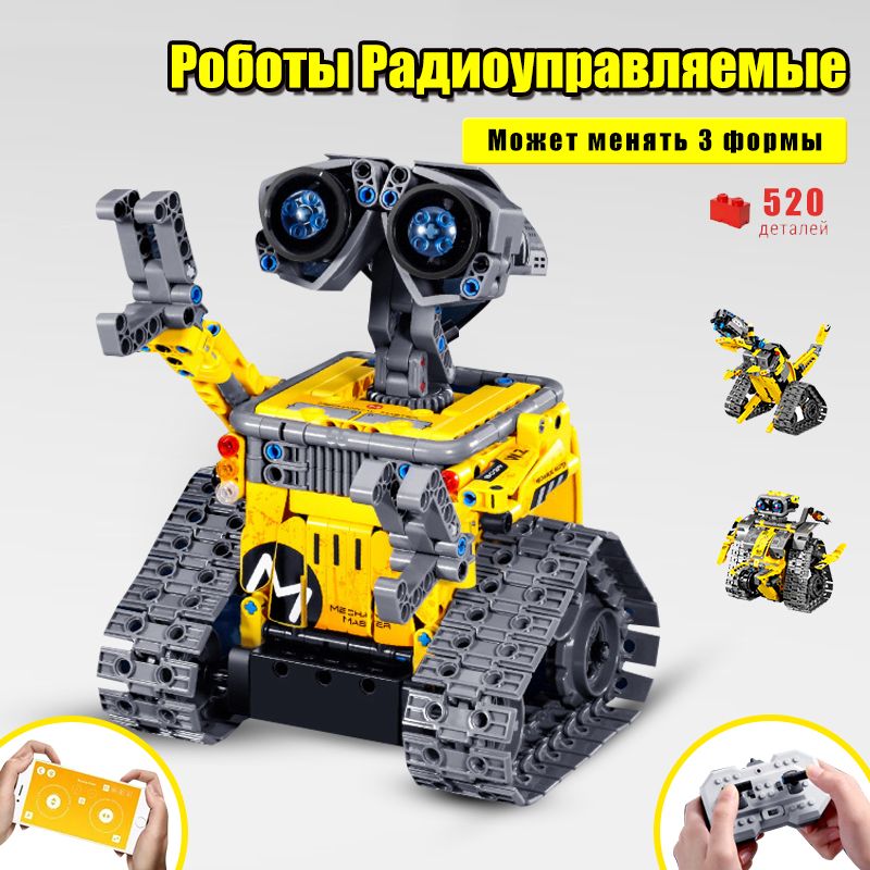 Конструктор Робот "Wall-E" 3 в 1,лего совместимый, с пультом дистанционного управления , и управляемый по блютус с телефона, 520 деталей