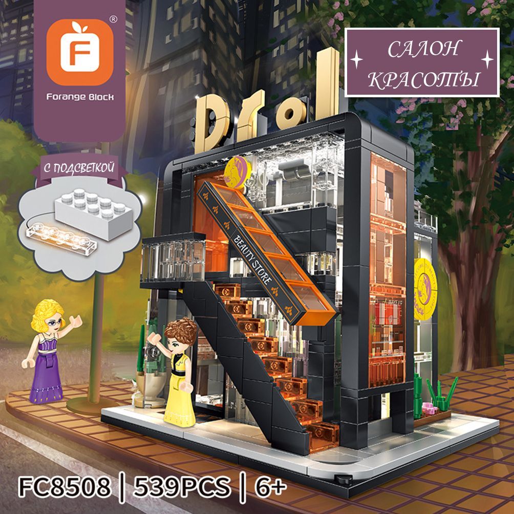 Конструктор с подсветкой Forange Block домик Салон Красоты , для девочек и мальчиков , совместим с Lego