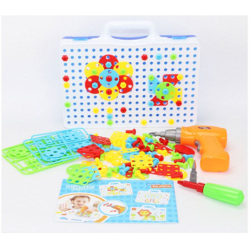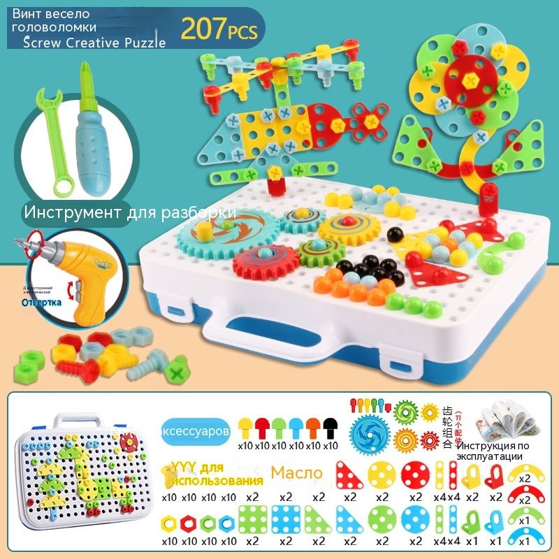 Конструктор с шуруповертом развивающий подарок для малышей, Конструктор 3D мозаика шуруповёртом дрелью и отверткой, Набор для творчества,207
