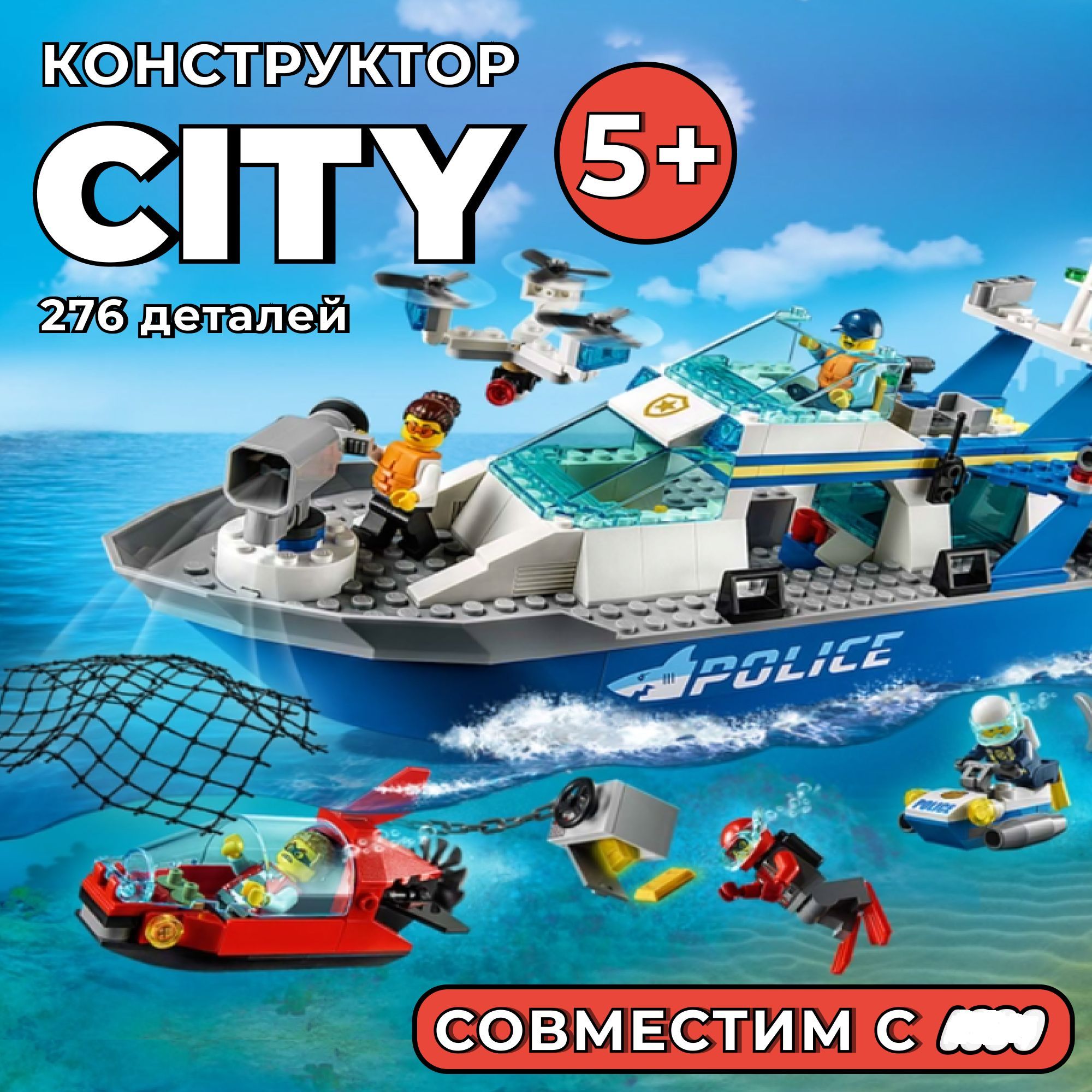 Конструктор сити (CITY) Морской полицейский патруль 276 деталей / пластиковый конструктор для мальчика, игрушка. В набор входят: полиция и грабители банка / Подарок мальчику. Совместим с Сити