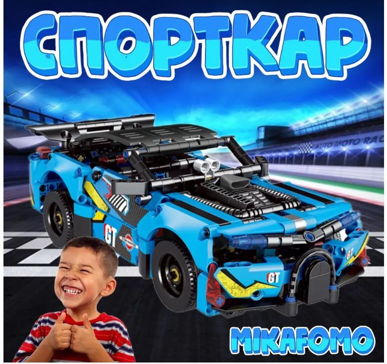 Описание: Конструктор Спорткар Техник / Совместим с лего/машина гоночная Конструктор MecFactor 3808 - это гоночная машинка ( спорткар ), состоящий из 521 детали. Позволит юному коллекционеру собственноручно собрать популярный суперкар, являющуюся копией гоночного автомобиля.Конструктор техник / Для мальчика / В подарокКолеса у собранной машинки подвижные. Детали конструктора отлично развивают мелкую моторику и воображение. Данная модель mecfactor 3808 (синий) совмещается с моделью mecfactor 3809 (красный) и из двух автомобилей можно собрать новый уникальный гибридный (сине-красный) спорткарЗаголовокПожалуйста, замените этот текст Вашим собственным. Просто кликните по тексту, чтобы добавить свой текст. Настройте стиль текста в левой колонке.ЗаголовокПожалуйста, замените этот текст Вашим собственным. Просто кликните по тексту, чтобы добавить свой текст. Настройте стиль текста в левой колонке.Конструктор вызовет интерес у каждого ребенка и станет отличным подарком