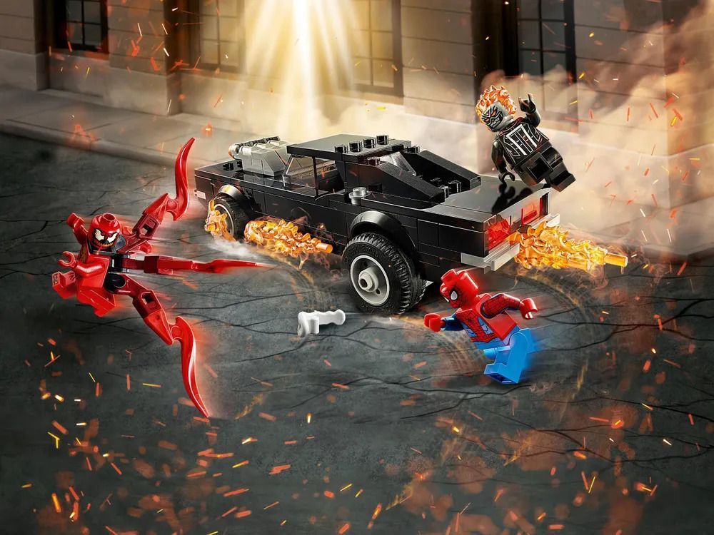 Описание: Призрачный гонщик мчится по городу на своей охваченной пламенем машине. Ее нагнетатель — заряженный трехствольный шипомет. Мститель с пылающим черепом ищет злодеев, чтобы свершить правосудие, — и ему повезло. На свободе разгуливает суперзлодей Карнаж. Человек-паук сражается с негодяем. Когда эти трое встретятся, схватка будет жаркой, как голова Призрачного гонщика!