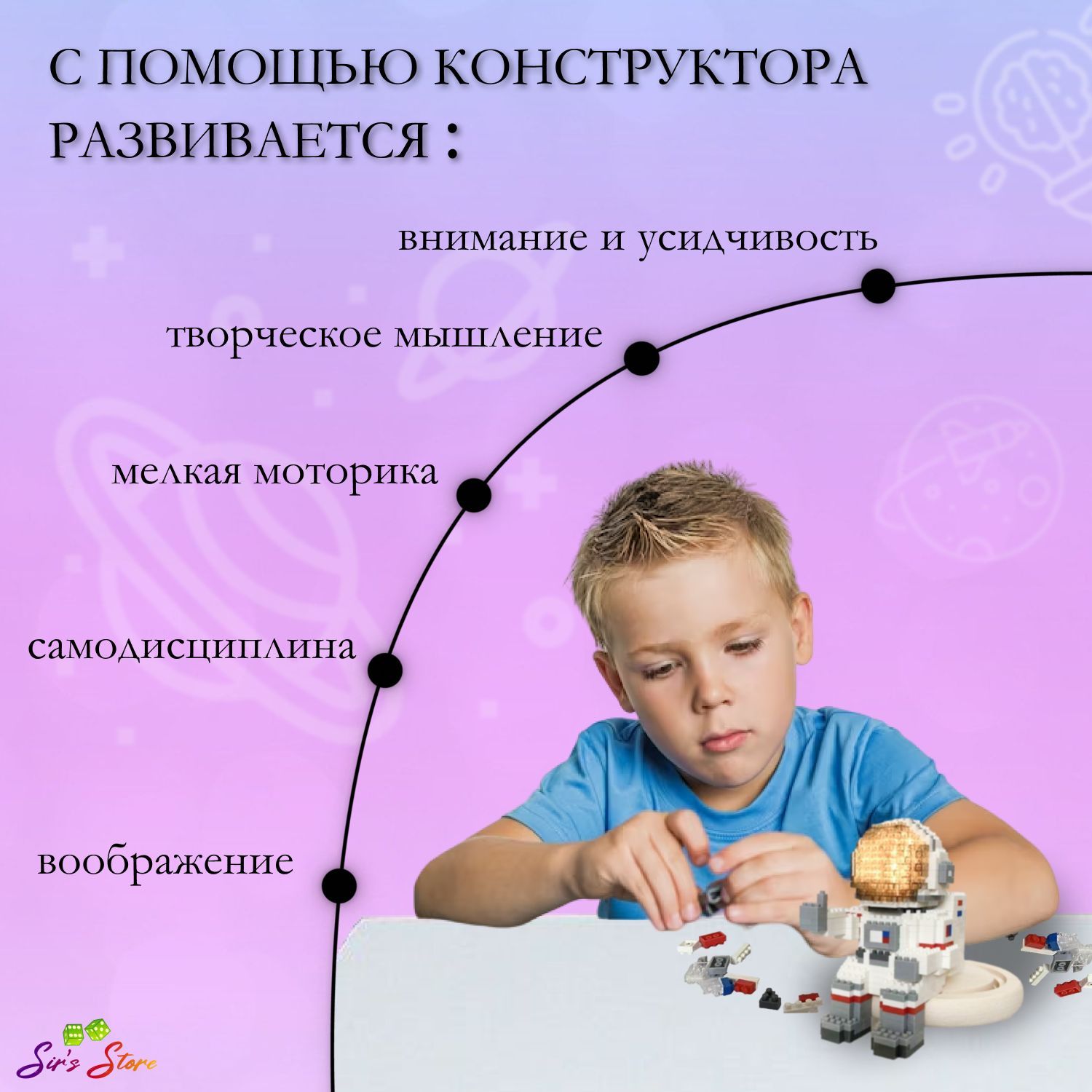• Для детей 7+Приобретите наш конструктор с подсветкой для создания светящегося космонавта и подарите вашим детям возможность погрузиться в захватывающий мир космических приключений.