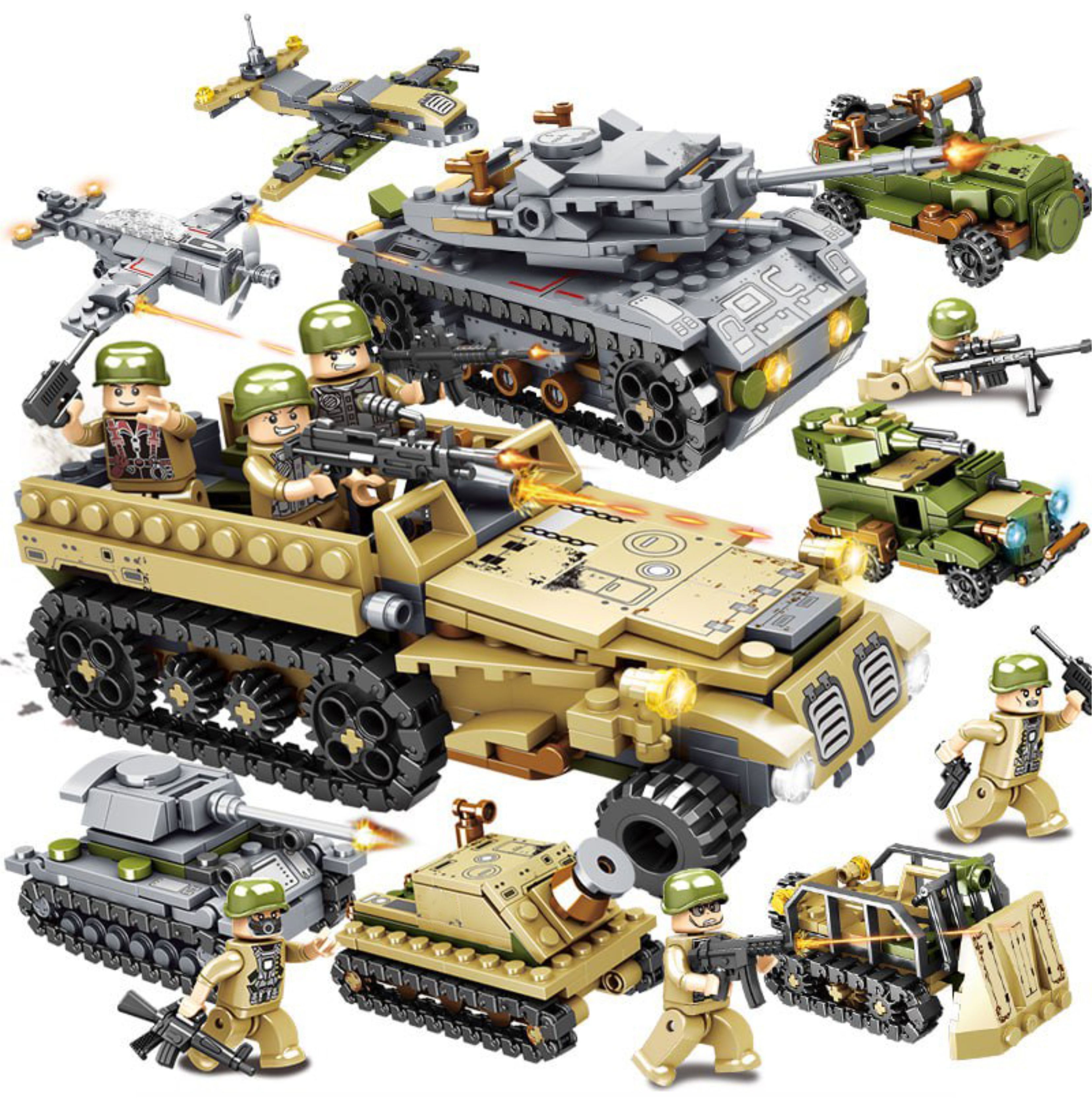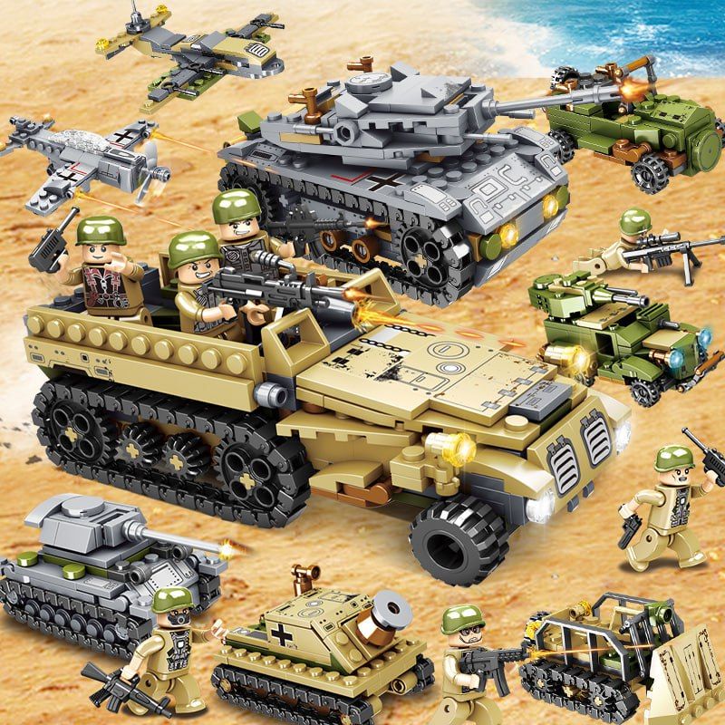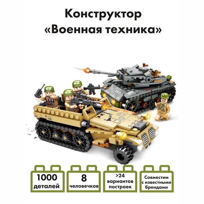 Описание: Конструктор детский, военный набор с человечками.1000 деталей и 8 человечков в комплекте.