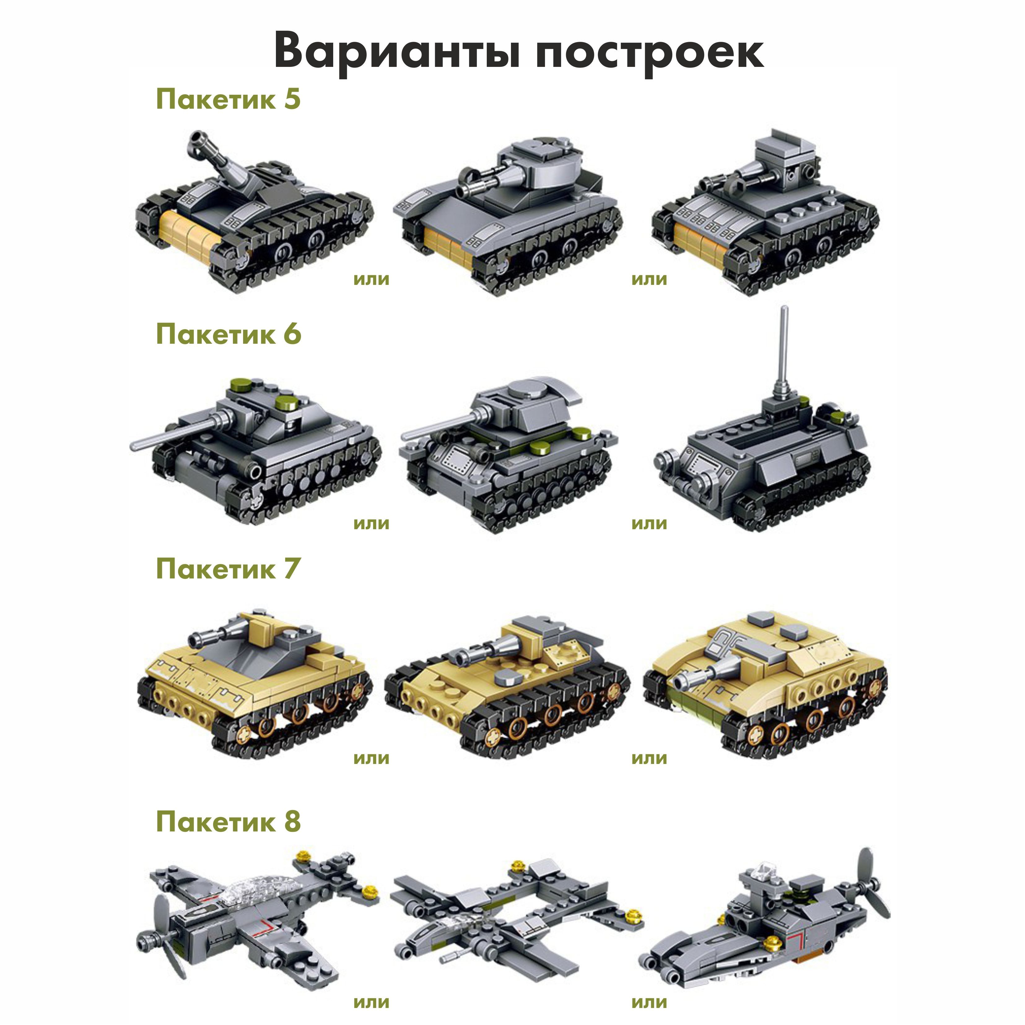 Конструктор танк, самолет, корабль, военный набор с человечками