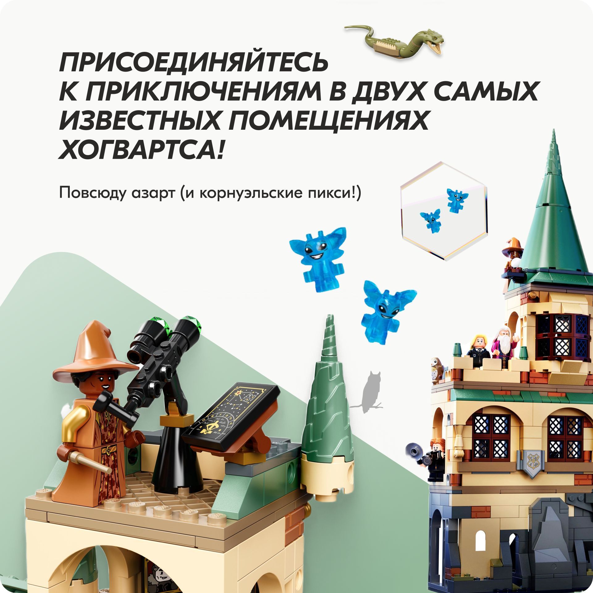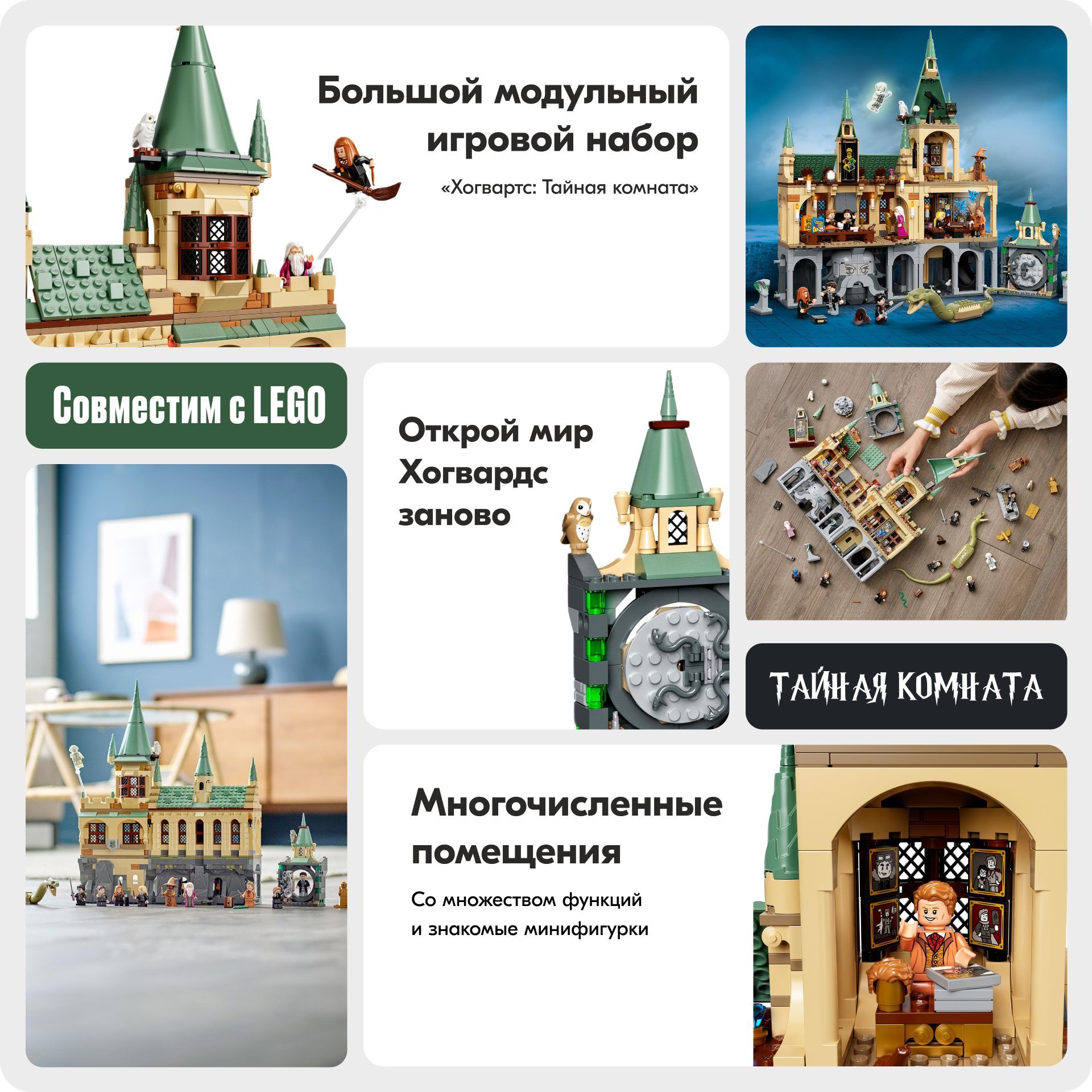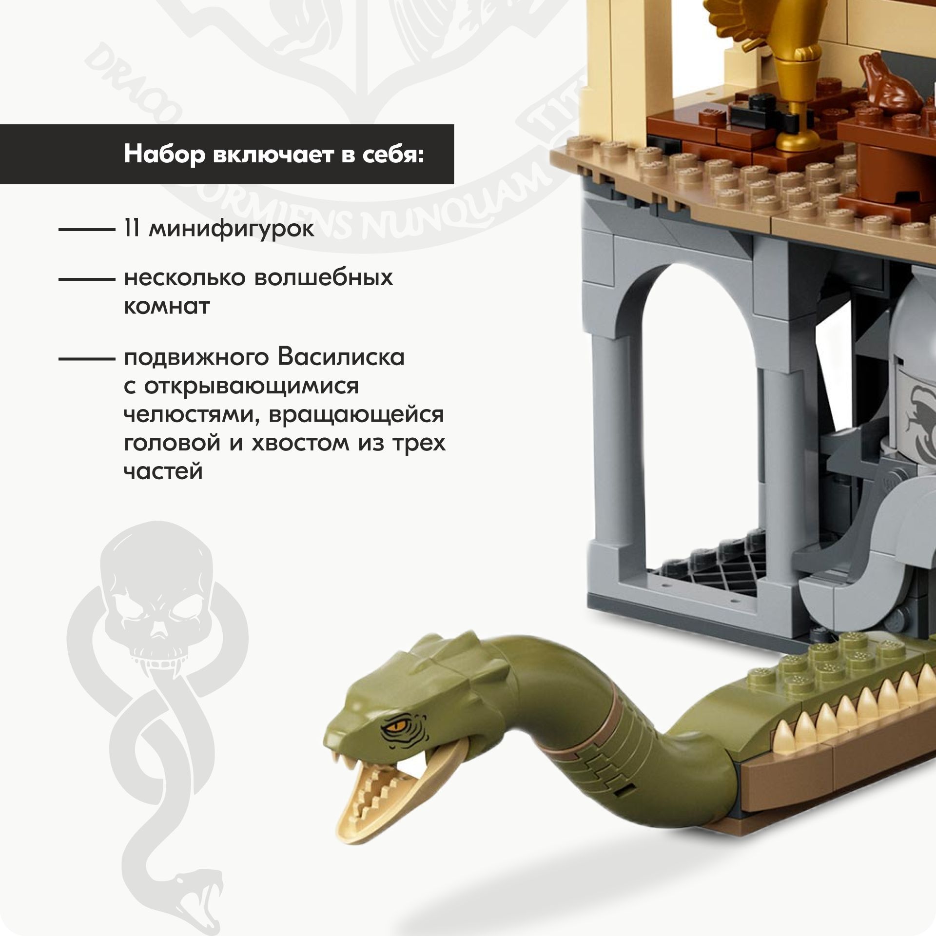Описание: Статуя скрывает секретный коридор Открой, чтобы увидеть скрытый вход для змеиного Василиска.Интерактивные сценыПогрузитесь в мир с головой благодаря интерактивным элементам в наборе.Золотой ВолшебникЭксклюзивная минифигурка в комплекте.Мир для исследованияМногочисленные помещения со множеством функций и знакомые минифигурки открывают перед детьми безграничные возможности разыгрывать любимые сцены из фильмов и создавать собственные истории.11 минифигурок:Гарри Поттер, Джинни Уизли, Том Реддл, Колин Криви, Джастин Финч-Флетчли, Полумна Лавгуд, Златопуст Локонс, Альбус Дамблдор, профессор Синистра и Почти Безголовый Ник.Приключения в двух самых известных помещениях Хогвартса!В Тайной комнате Гарри Поттер сражается с Томом Реддлом и гигантским василиском, а в Большом зале готова к работе Распределяющая шляпа и прочие волшебные аксессуары. Перед детьми открываются безграничные возможности разыгрывать любимые сцены из фильмов и создавать собственные истории.