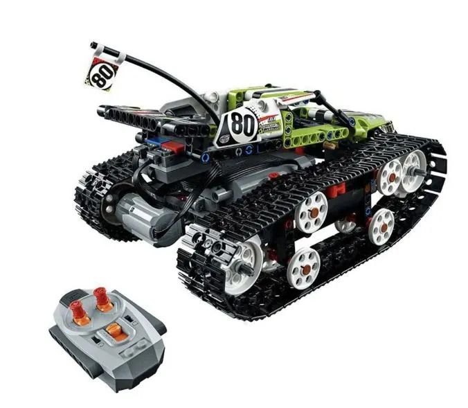 Скоростной вездеход RC TRACKED RACER получил огромную популярность среди конструкторов на радиоуправлении. Набор содержит среднее количество деталей для сборки, но главное это оптимальное соотношение цены и получение быстрого гусеничного вездехода на радиоуправлении! В комплект электромеханического конструктора входят все необходимые элементы сборки, система и пульт радиоуправления, а также электрический двигатель. Детали выполнены в салатовом, белом, черном и красном цветах. Большая часть комплекта сделана из пластика. В наличии четыре канала управления, с помощью которых можно пользоваться другими моделями бренда. Издаваемый шум напрямую зависит от покрытия, по которому ездит вездеход.