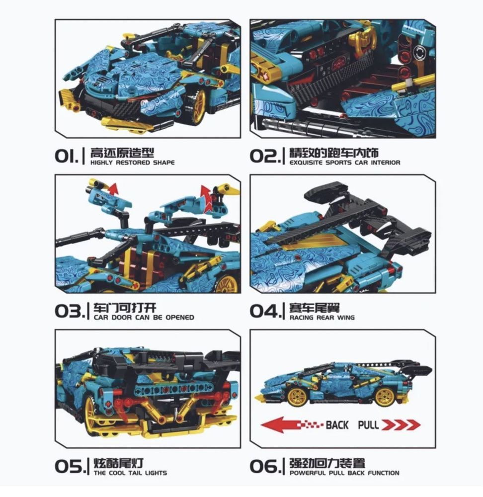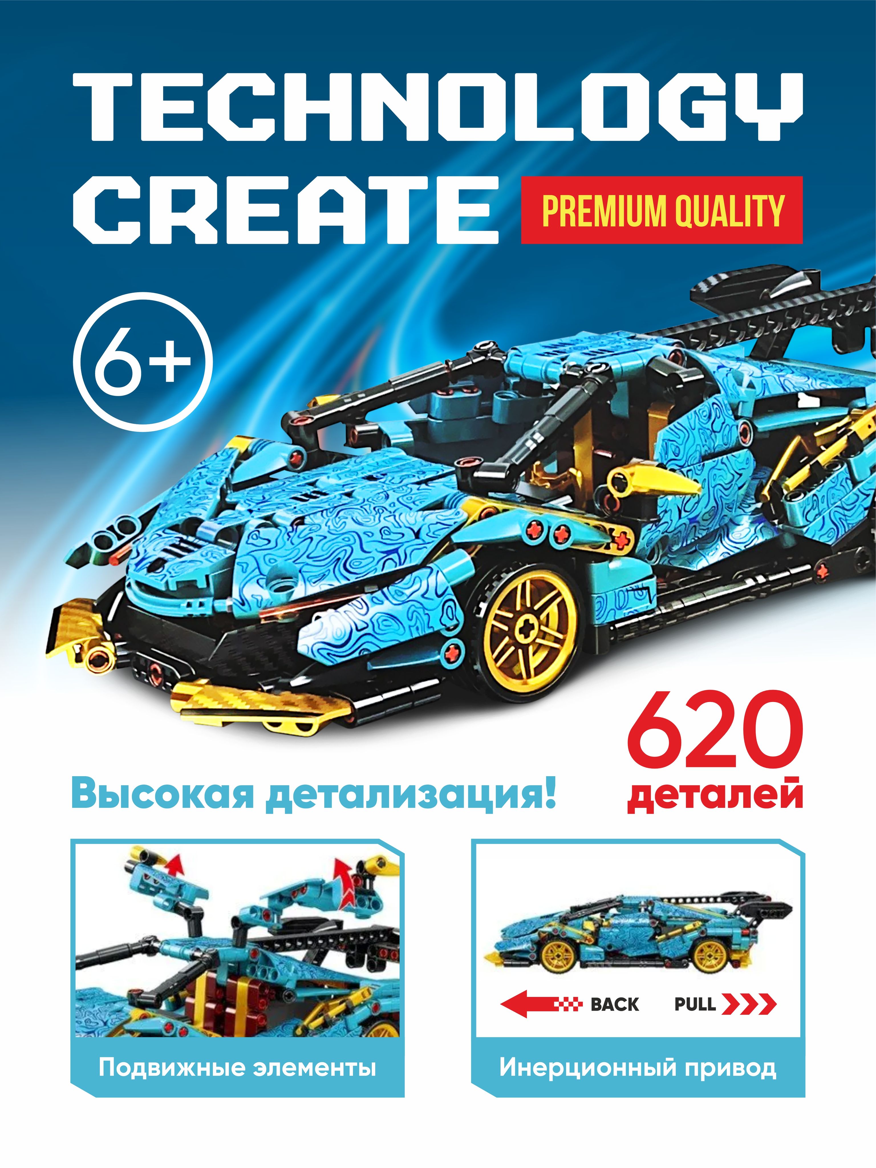 Конструктор Техник набор Lamborghini Huracan 620 деталей, спортивная машинка с инерционным механизмом technology ( модель racing спорткар / лего совместимый / подарок для мальчиков )