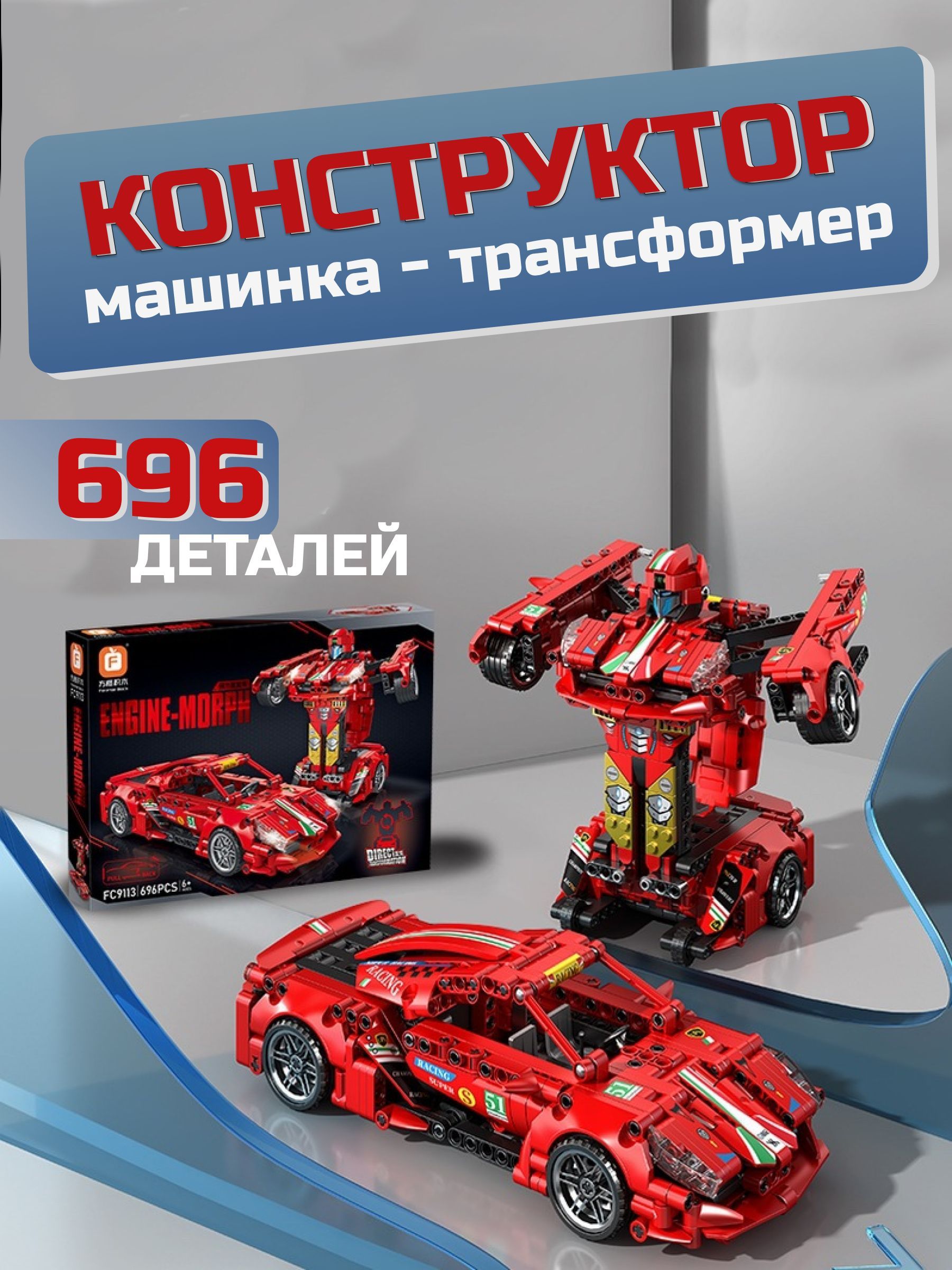 Конструктор трансформер гоночная машина, 696 деталей, для мальчиков, для девочек, совместим с лего