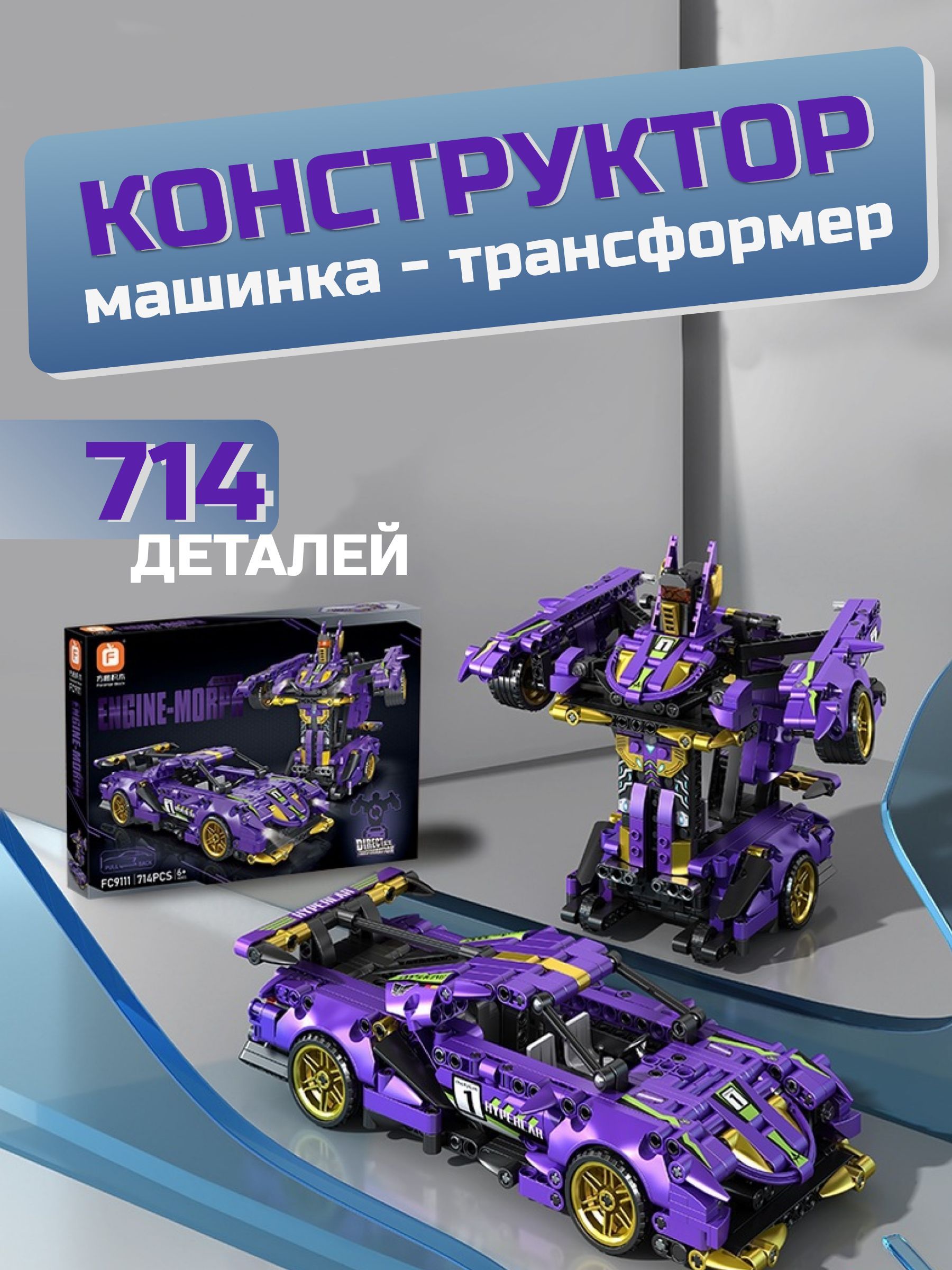 Конструктор трансформер гоночная машина, 714 деталей, для мальчиков, для девочек, совместим с лего