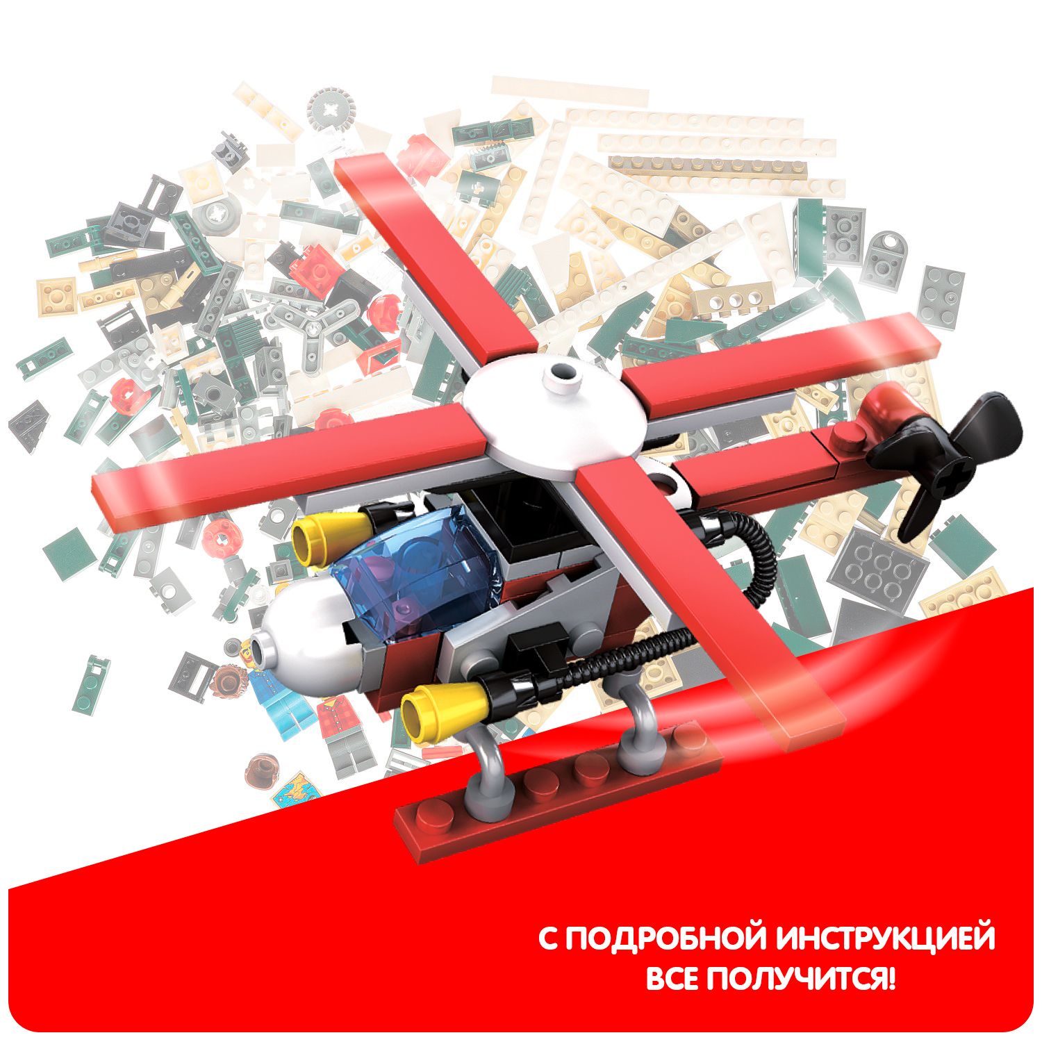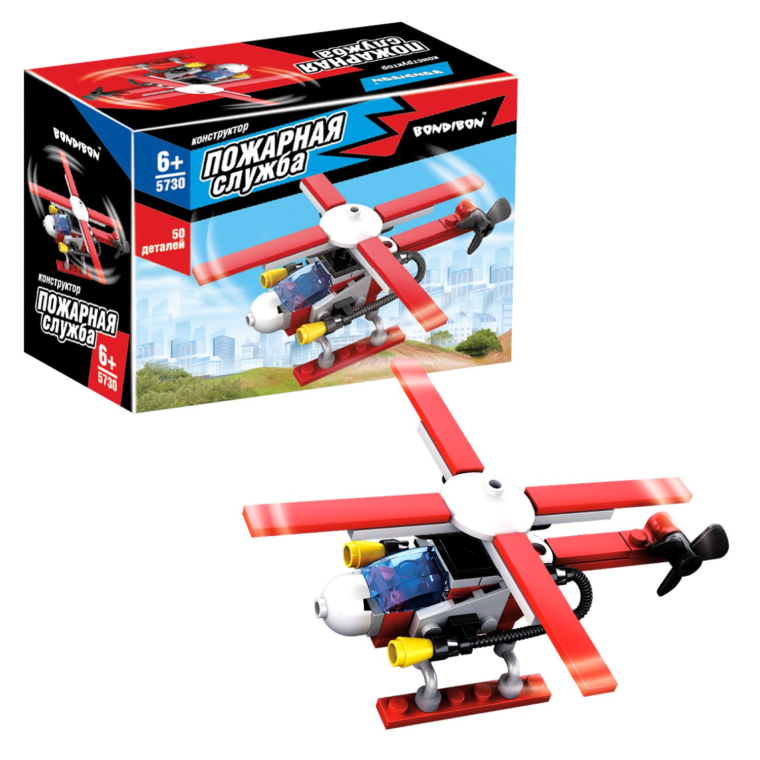 Конструктор ВЕРТОЛЕТ, 50 деталей, Пожарная Служба, Bondibon