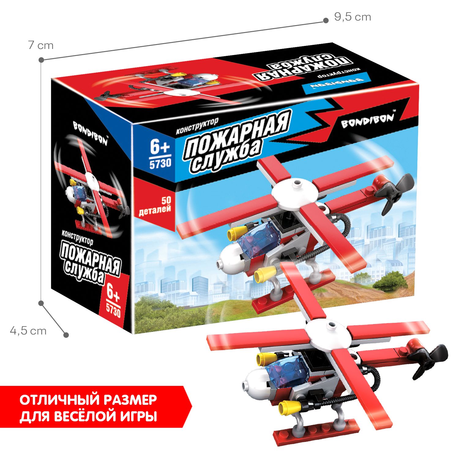 Описание: С помощью вертолета Пожарной службы от Bondibon Вы сможете быстро прибыть на место происшествия и потушить любой пожар! По воздуху легко добраться к месту пожара: не мешают прохожие, машины, петляющие улицы. Конструктор познакомит детей с работой пожарных. Такие сюжетно-ролевые игры способствуют развитию воображения и творческого мышления. В процессе сборки конструктора закладываются базовые знания робототехники. Игрушка тренирует мелкую моторику, развивает пространственное мышление и умение составлять из частей целое. Используя инструкцию, соберите пожарный вертолет. На собранной игрушке вращаются винты, есть прозрачная кабина и мощные огнетушители. В комплект входят инструкция и 50 деталей, совместимых с конструкторами от мировых производителей. Конструктор для мальчиков и девочек от 6 лет – отличный подарок на день рождения, Новый год и любой другой праздник. Дарите яркие развивающие детские игрушки от Bondibon!