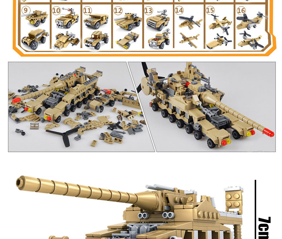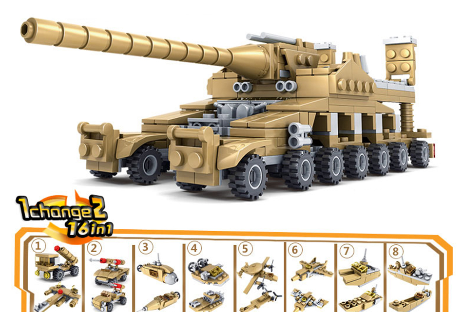Название блоков: 16 собранных 1 супер танк строительных блоков от Huiqibao
