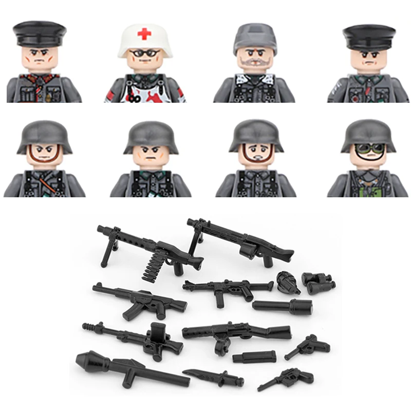 Конструктор Военный WW2 односторонний с принтом, Solider, фигурки, подарки, оружие, пистолеты, совместимы с MOC, мини-кирпичи, игрушки для детей