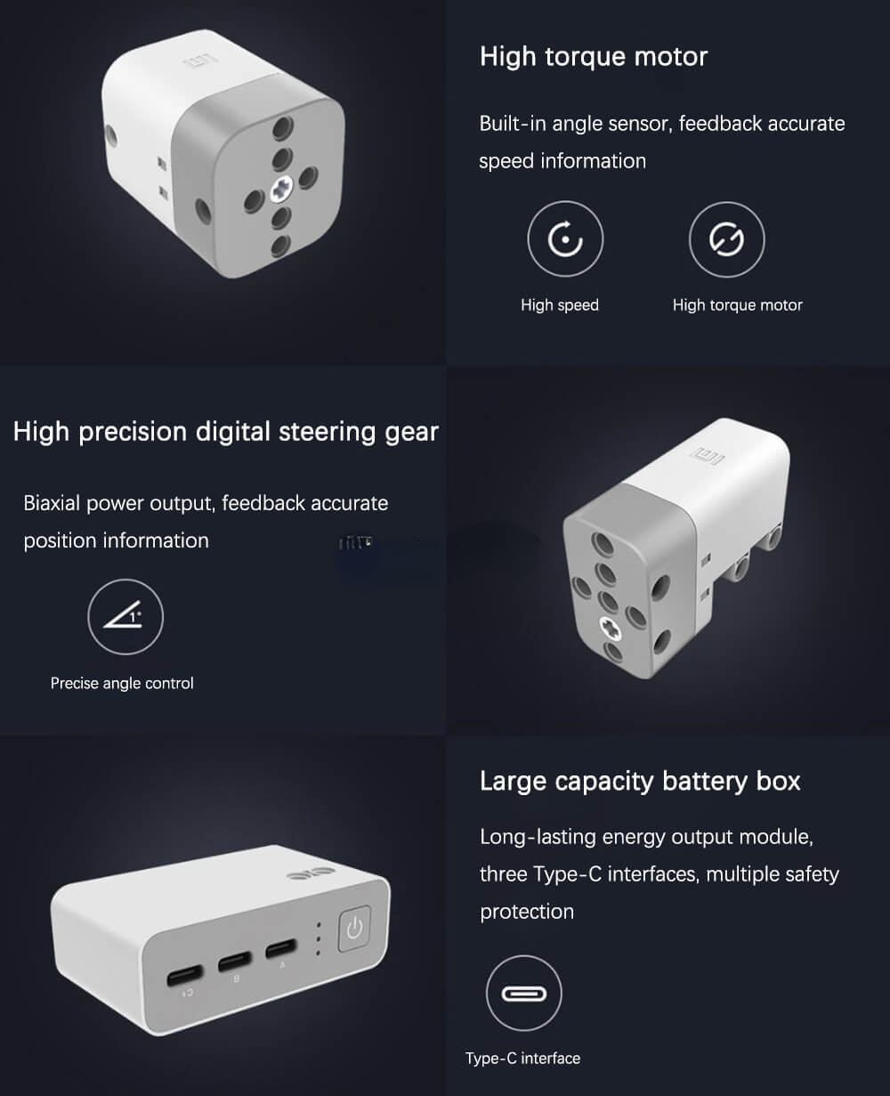 Совершенно Новая интеллектуальная архитектура управления строительными блоками, различные интеллектуальные модули образуют бесплатную систему с помощью технологии Bluetooth Mesh, а мобильный телефон обеспечивает поддержку вычислительной мощности AI для аппаратного обеспечения. Интеллектуальный модуль с собственным источником питания может реализовать более гибкие функции.