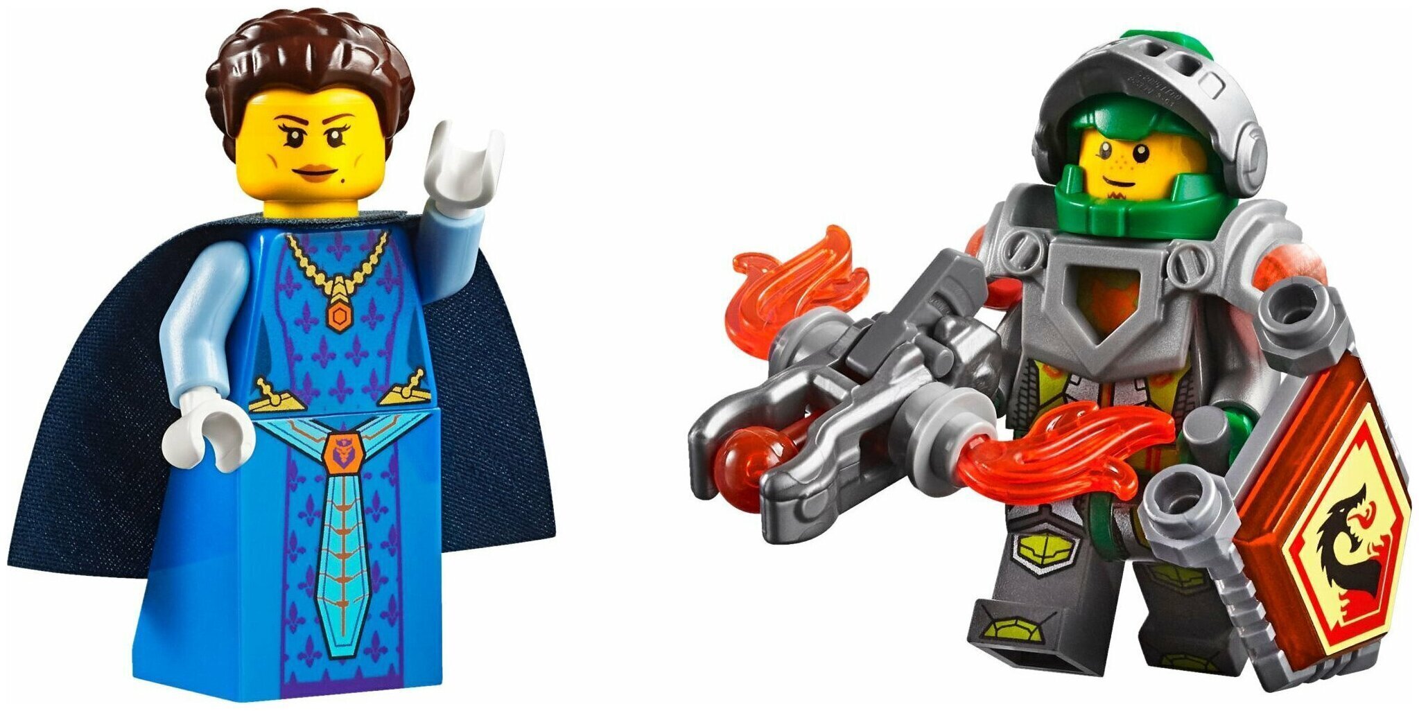 Королева заключена внутри Инфернокса! К счастью, рыцарь Аарон Фокс, любящий сражения и приключения, уже идет на помощь! Наворачивай круги вокруг огромного монстра на сверхскоростном Парящем коне. Стреляй из Сверкающего лука, спеши на помощь королеве и освободи ее из плена! В набор входит 2 щита для сканирования, дающие способности NEXO: Лавовый дракон и Временной разрыв.