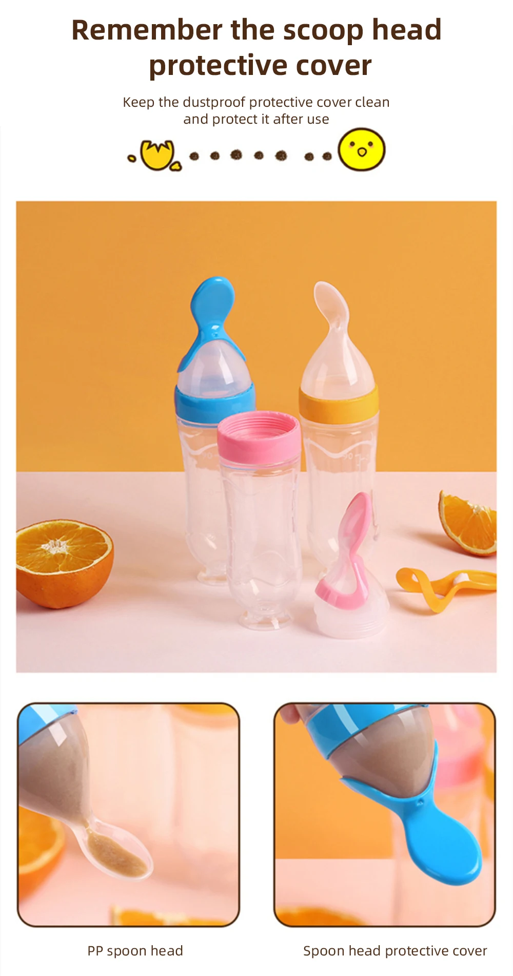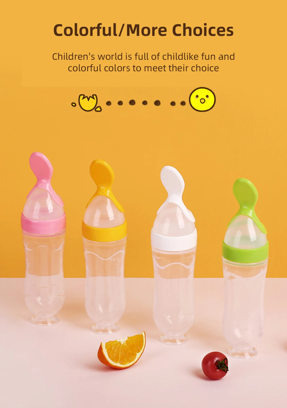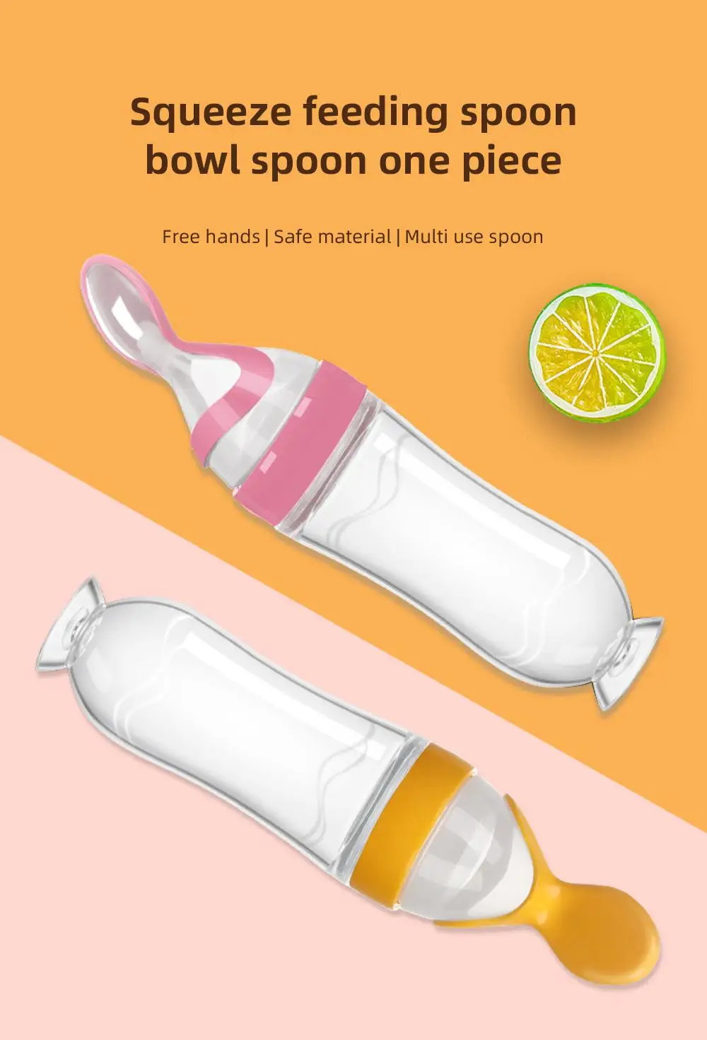 Контейнер для еды Детская бутылочка для риса Мягкая ложка Голова Сожмите Ложка для кормления Детская силиконовая бутылочка Тренировка ребенка Разноцветный силикон