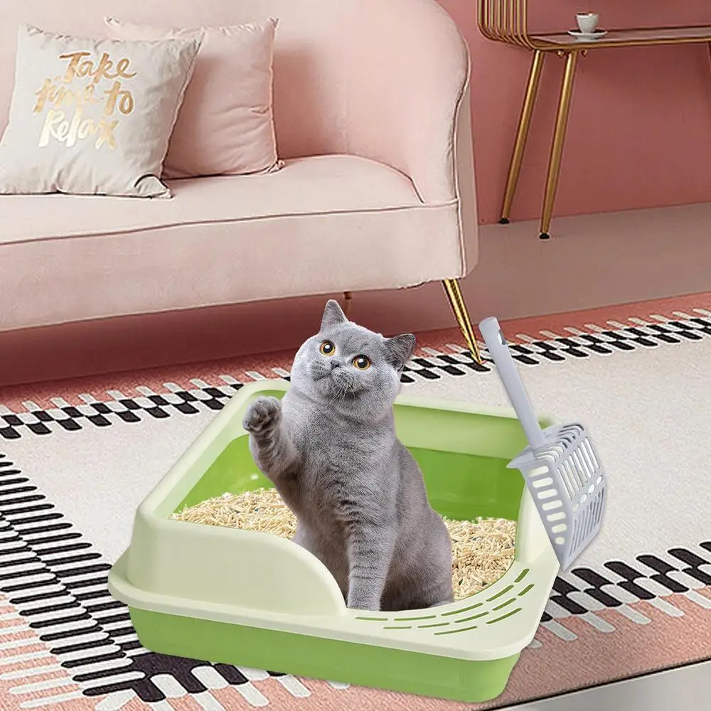 Контейнер для кошачьего туалета, полузакрытый большой контейнер для наполнителя с защитой от брызг, с высокой боковой съемной дорожной лоток для наполнителя с лопаткой для наполнителя