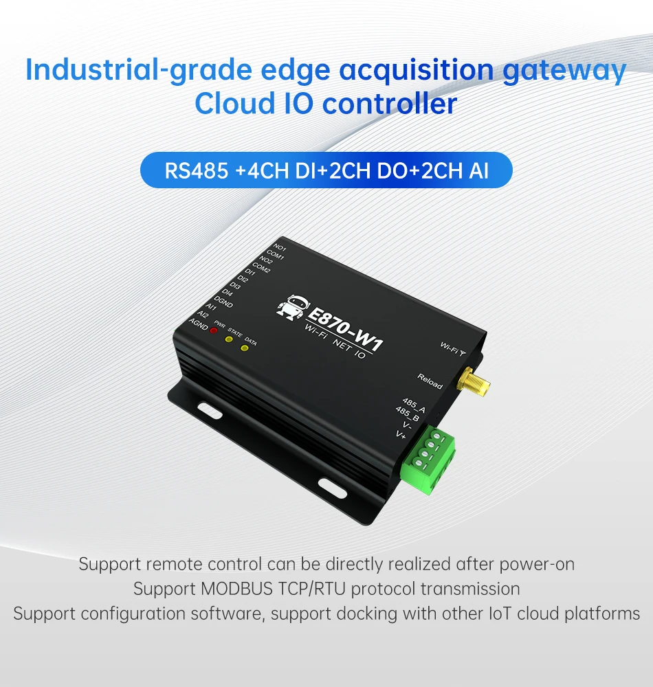 Контроллер-шлюз для сбора данных с поддержкой Wi-Fi, интернета Ethernet RS485, 4DI + 2DO + 2AI