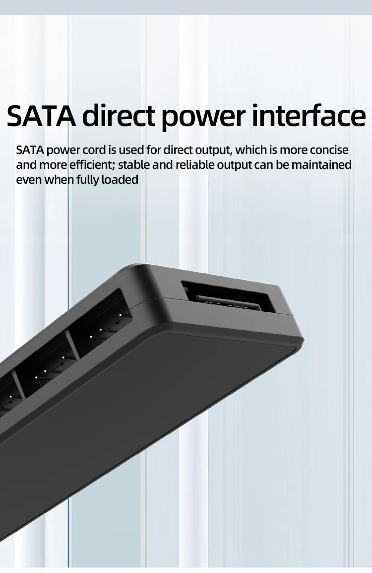 Интерфейс прямой передачи питания SATA: он принимает прямую передачу шнура питания SATA, которая является более простой и эффективной; Стабильный и надежный выход может быть сохранен даже в состоянии полной нагрузки.