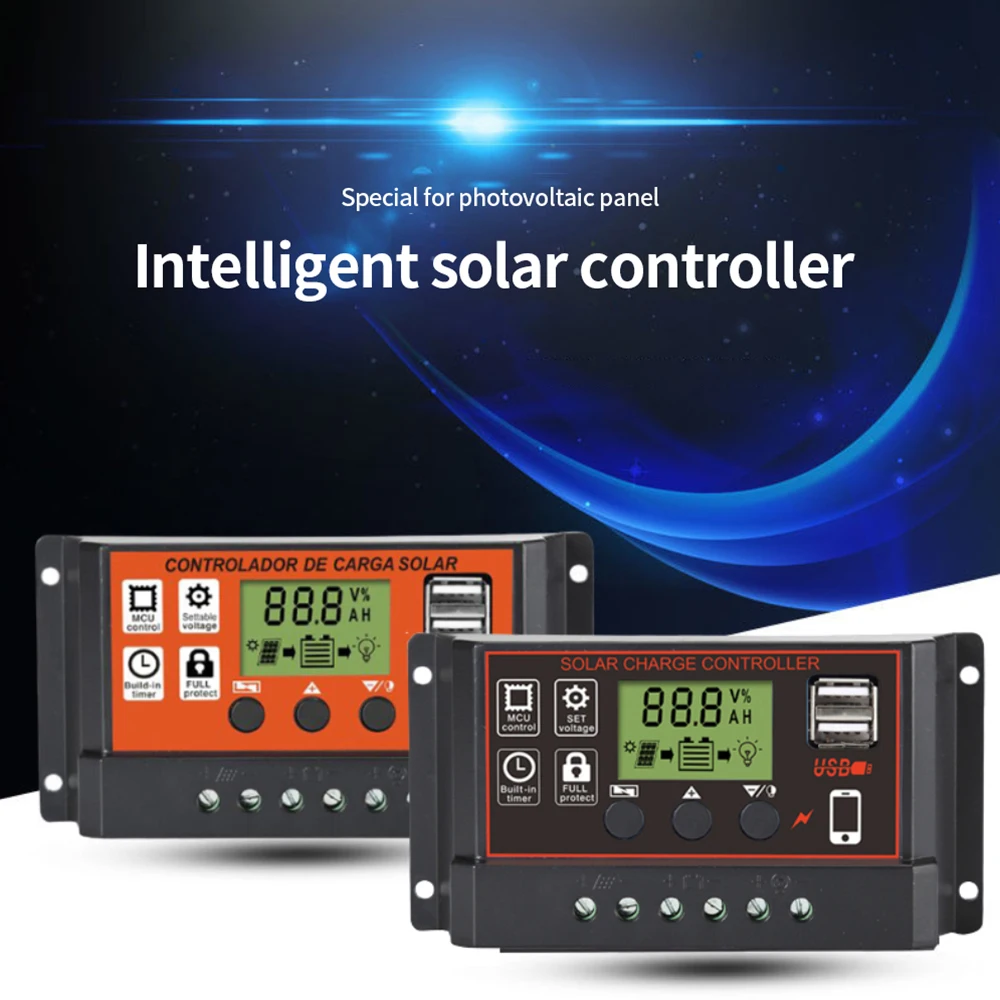 Контроллер заряда солнечной батареи 12 В, 24 В, автоматический контроллер PV LCD 30 А, 20 А, 10 А, ШИМ, фотоэлектрический ЖК-дисплей, выход 5 в с USB