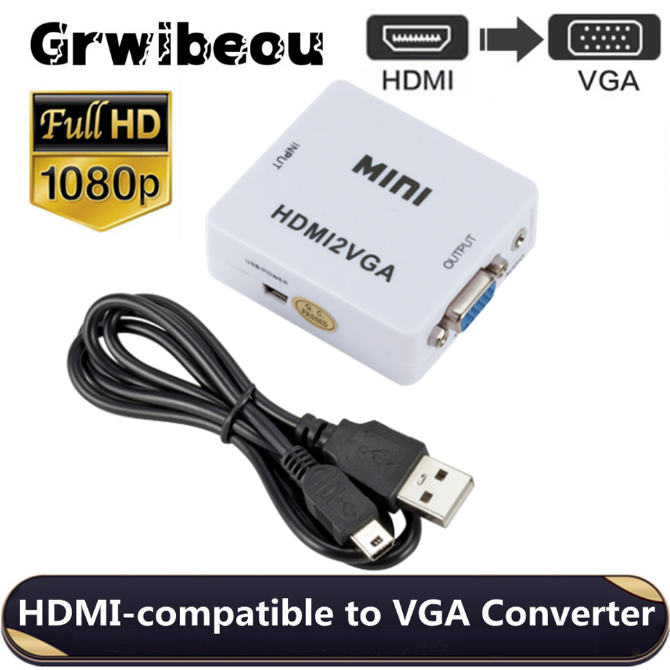 Конвертер Grwibeou HDMI-совместимый с VGA, 1080P, с кабелем питания USB, адаптер HDMI-совместимый с VGA, конвертер для ПК, ноутбука, HDTV