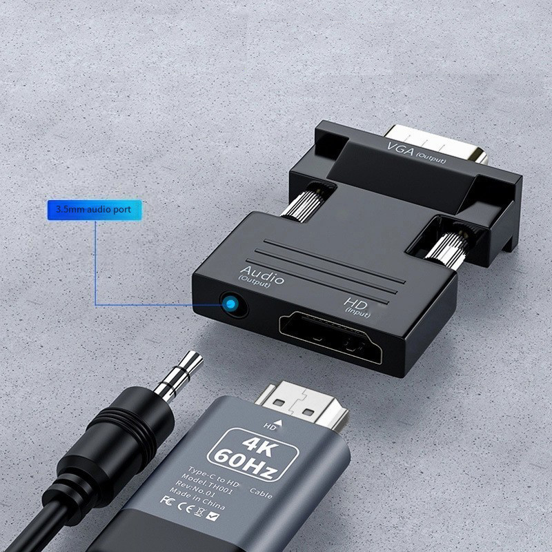 Конвертер HDMI-совместимый с VGA с аудиокабелем 3,5 мм для PS4, ПК, ноутбуков, телевизоров, мониторов, проекторов 1080P HD, переходник мама-VGA папа