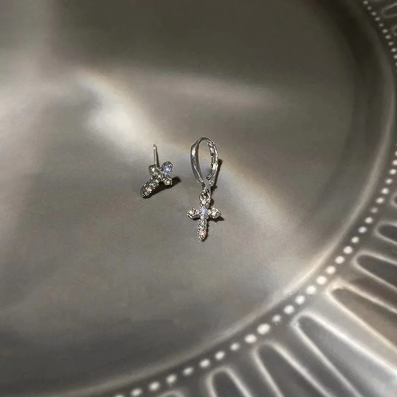 Korean Fashion Zircon Crystal Cross Women Stud Earrings for Gothic Punk Hip Hop Female Piercing Dangle Earrings Party Jewelry