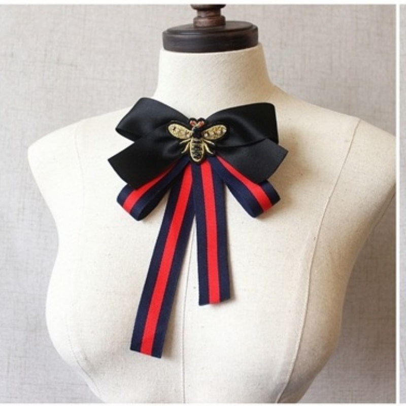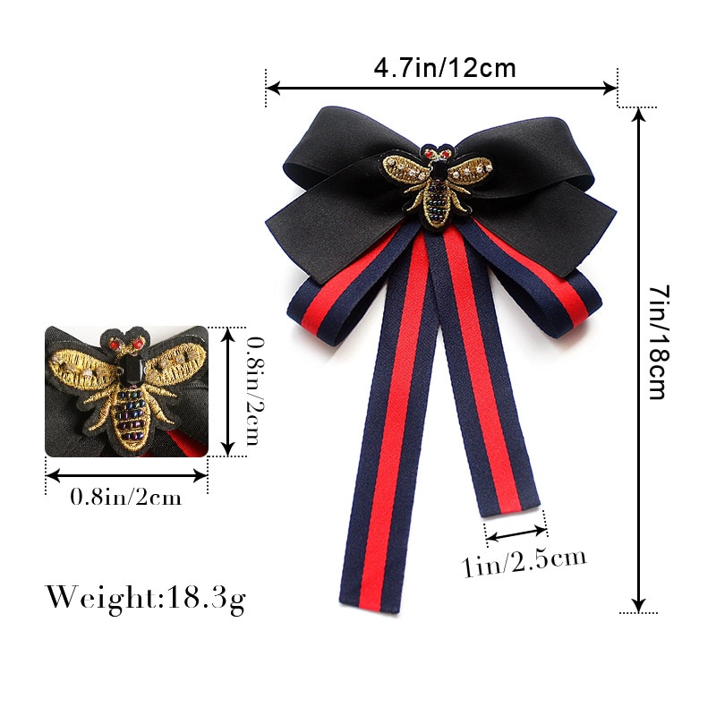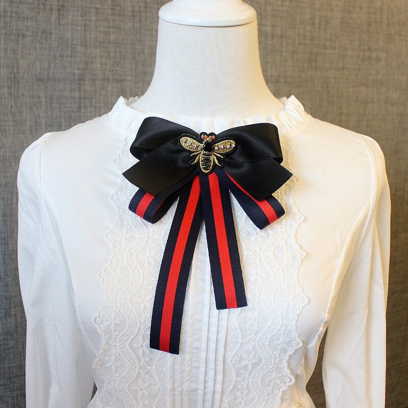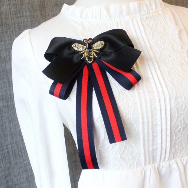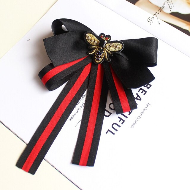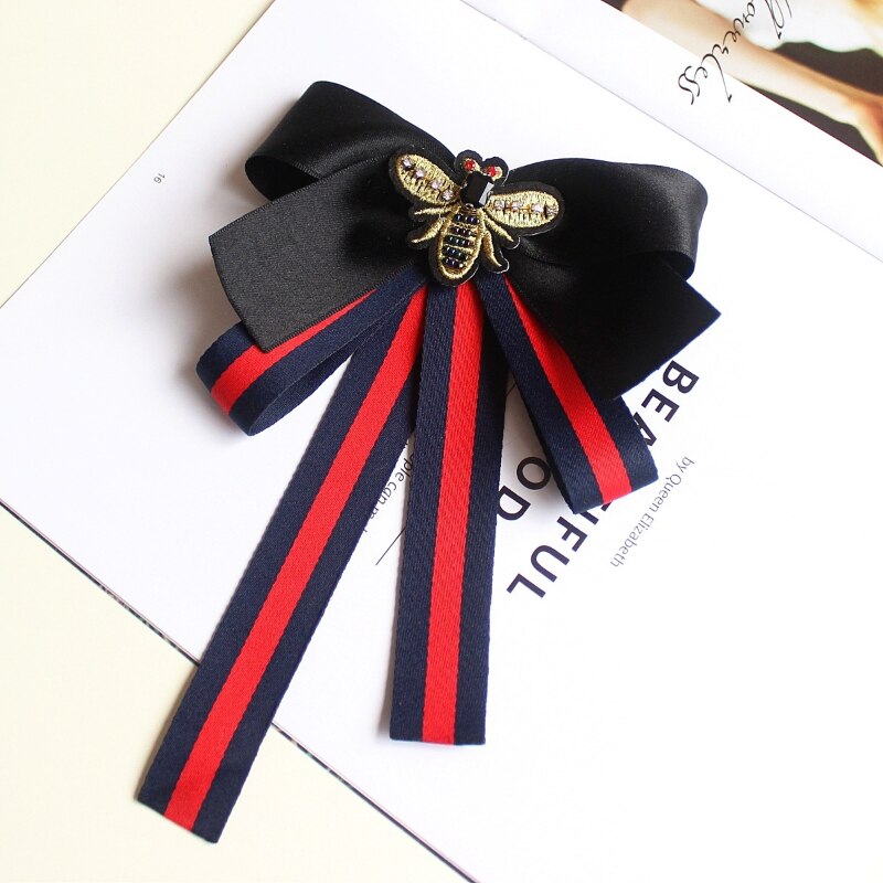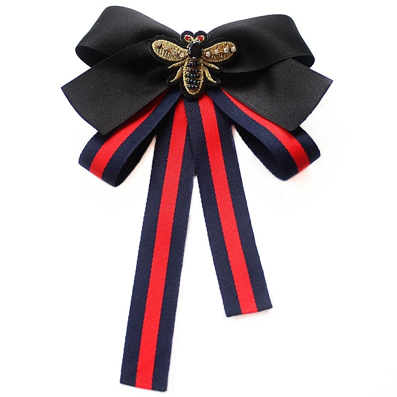 Корейская модная Винтажная брошь в полоску с большим бантом, Большая большая брошь для рубашки, подарок для открытия речи, галстук-бабочка в виде пчелы