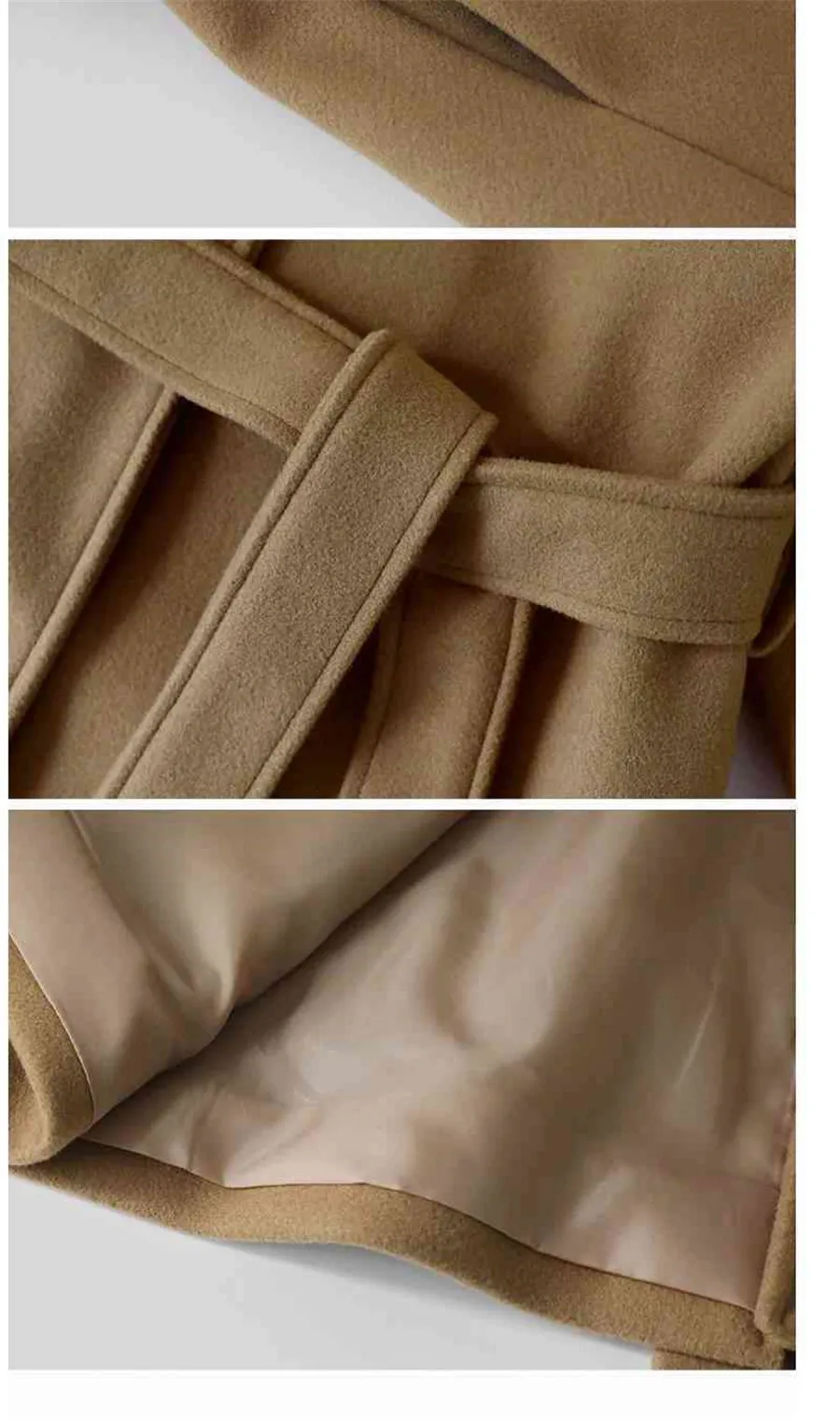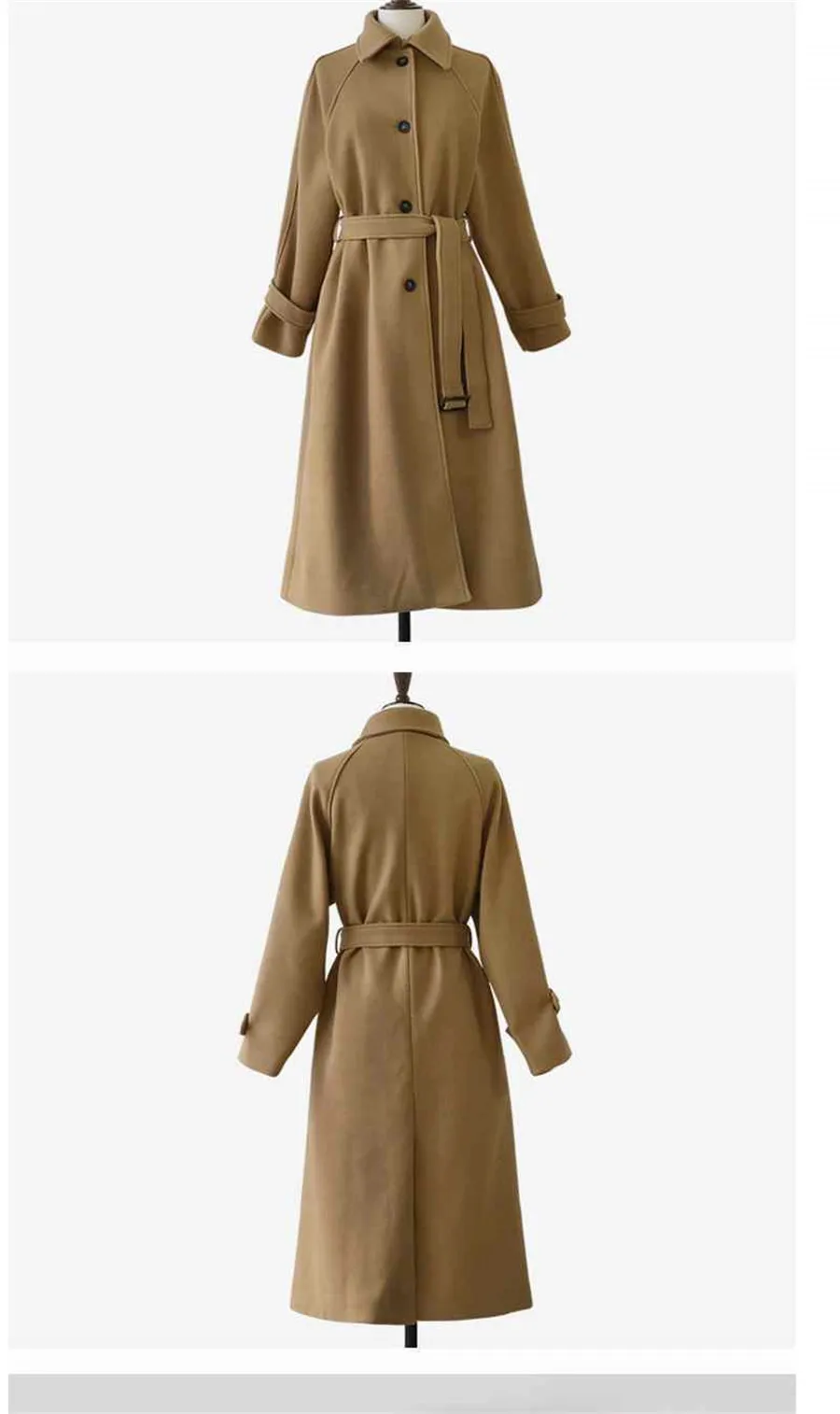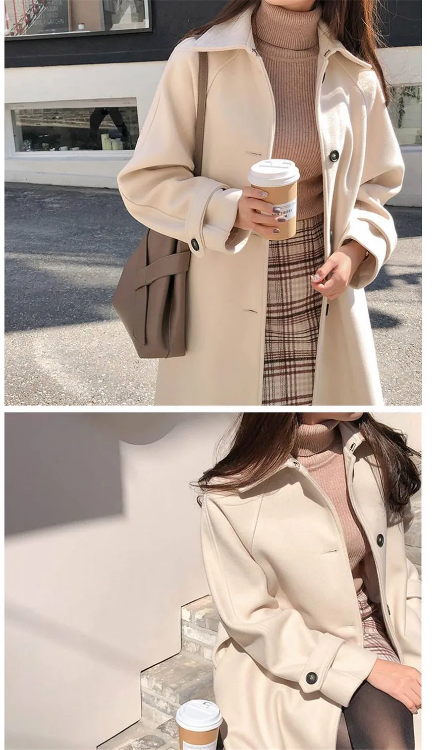 Корейская модная женская шерстяная куртка, зимнее плотное теплое длинное пальто, однотонное женское повседневное шерстяное пальто с отложным воротником и поясом