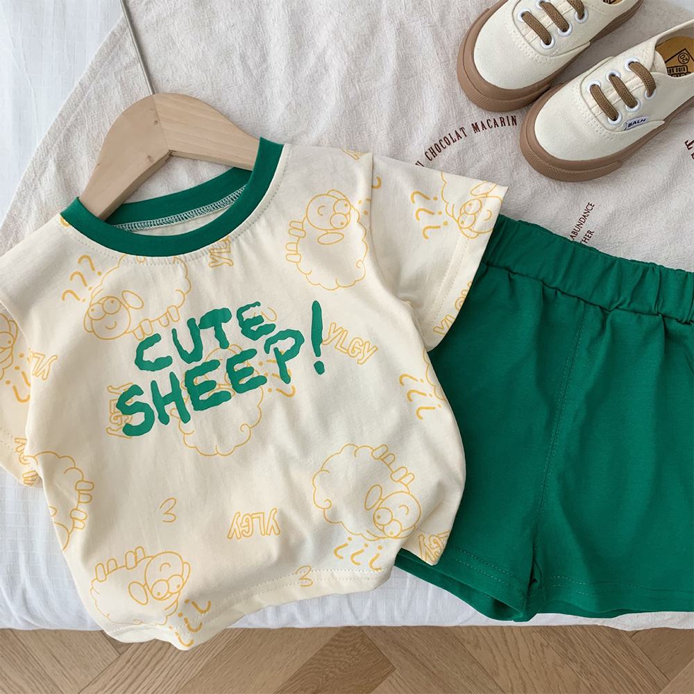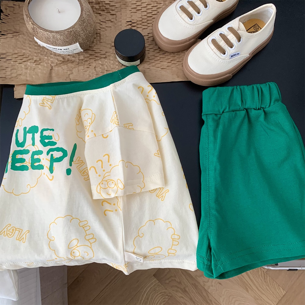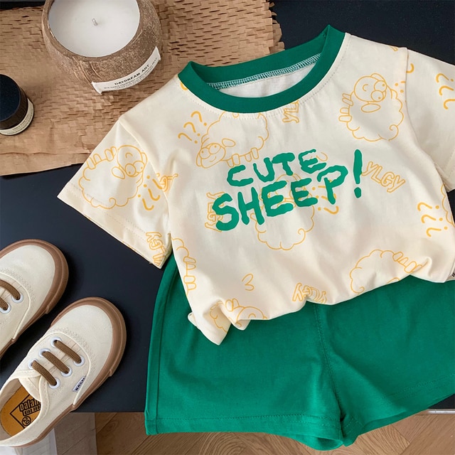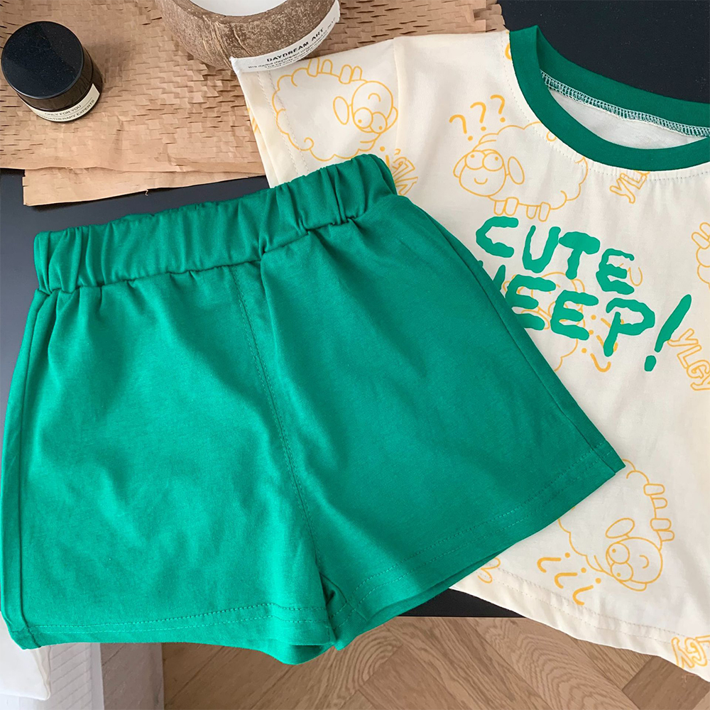 Корейские летние детские комплекты, футболка с коротким рукавом и принтом для маленьких мальчиков и девочек + шорты, костюм из 2 предметов, спортивная одежда