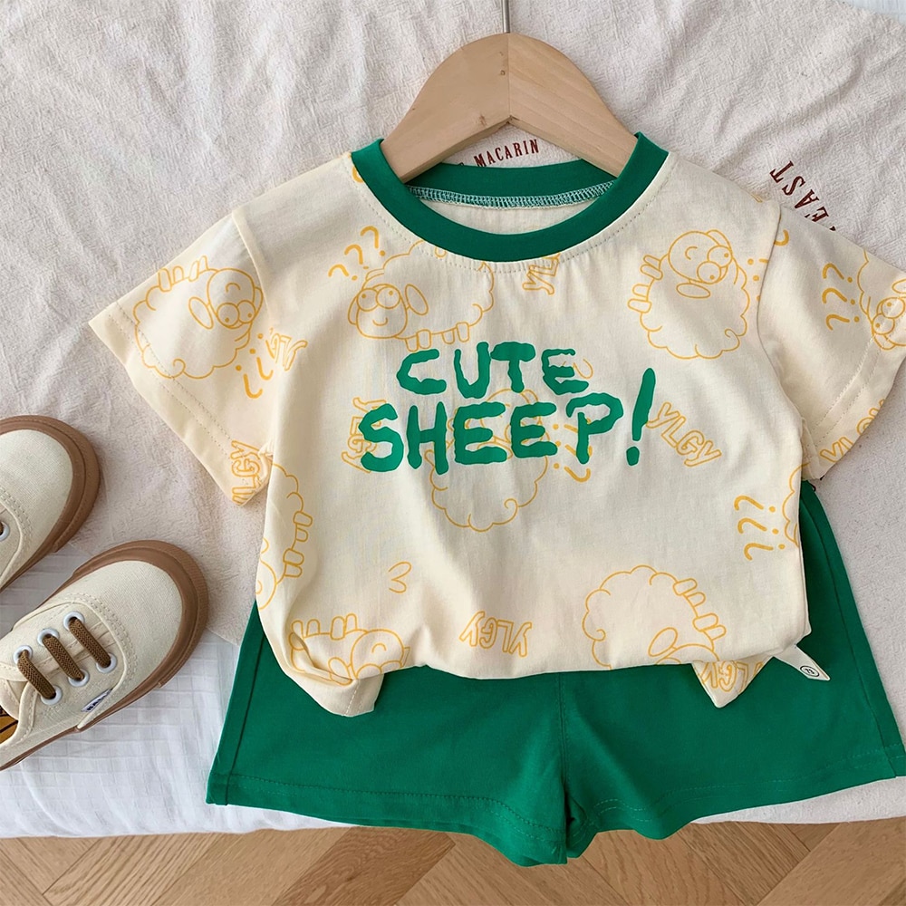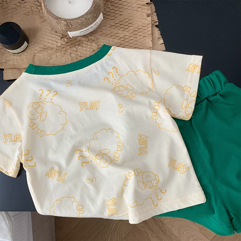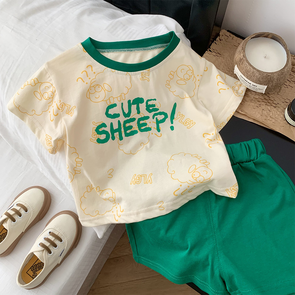 Корейские летние детские комплекты, футболка с коротким рукавом и принтом для маленьких мальчиков и девочек + шорты, костюм из 2 предметов, спортивная одежда