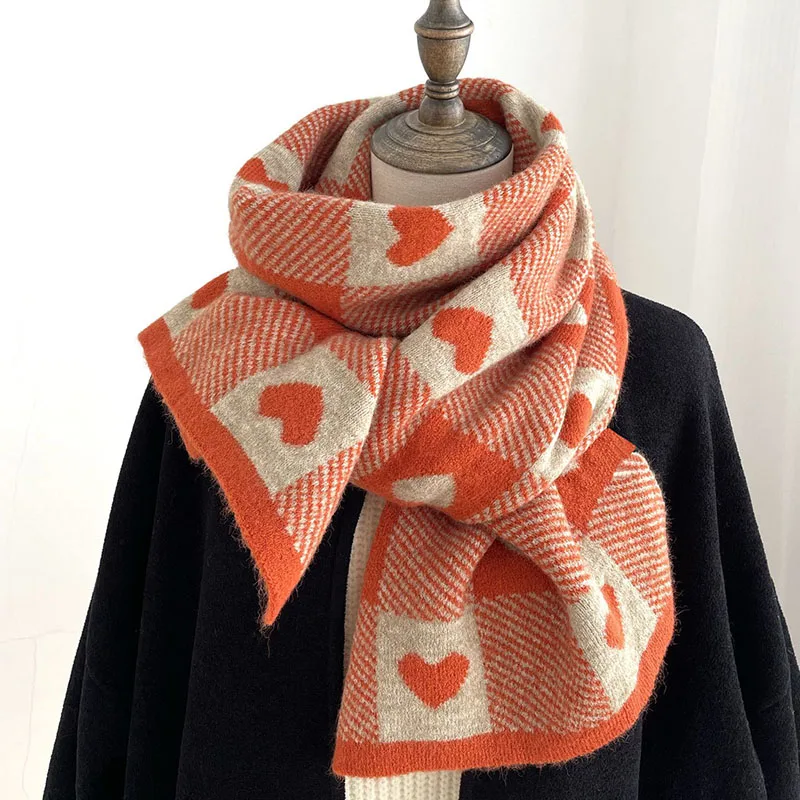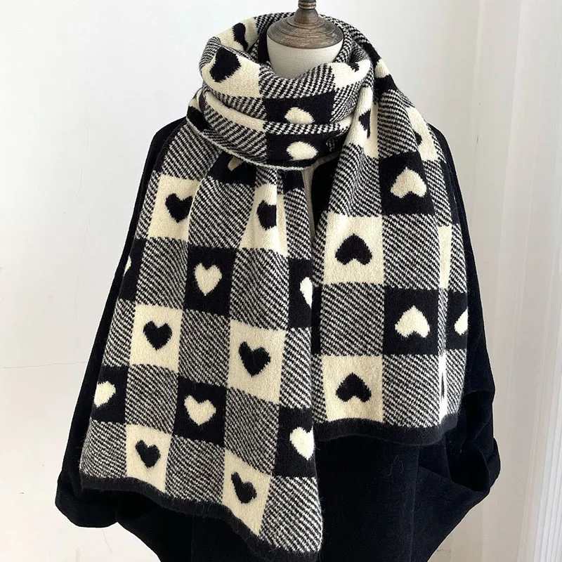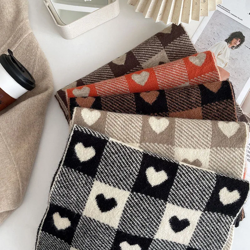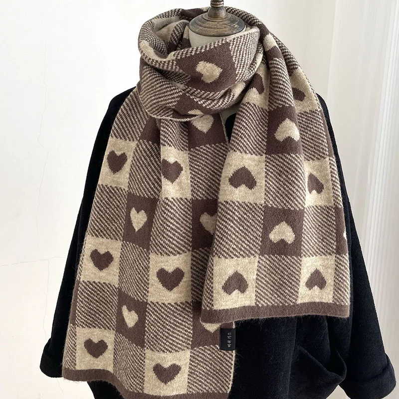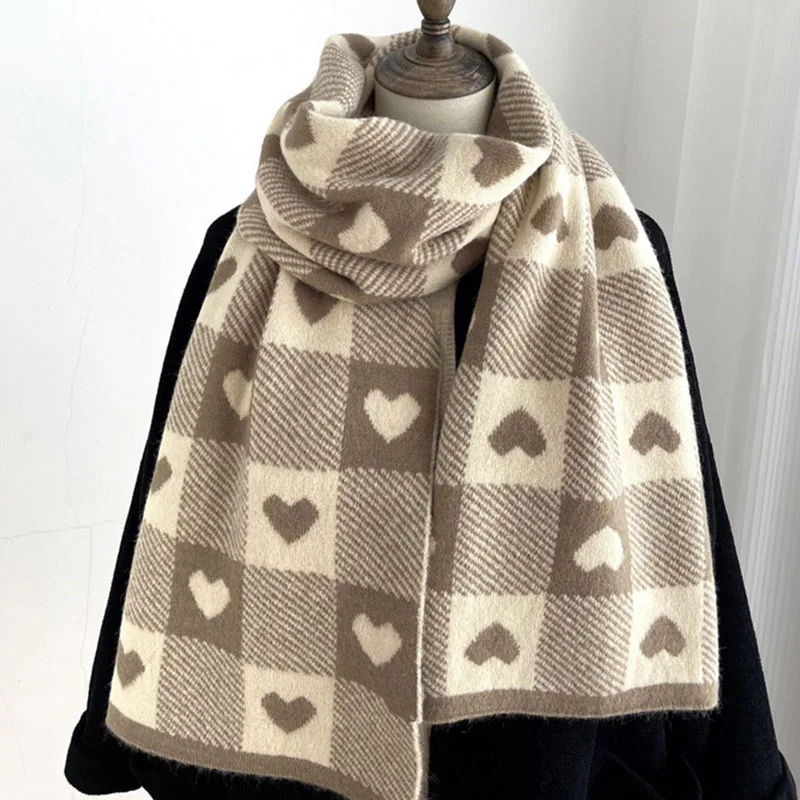 Корейские шарфы для женщин на осень и зиму утолщенный термовязаный шарф в клетку в виде сердца шарф длинный размер теплые шарфы подарки