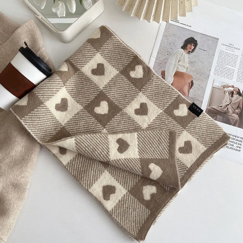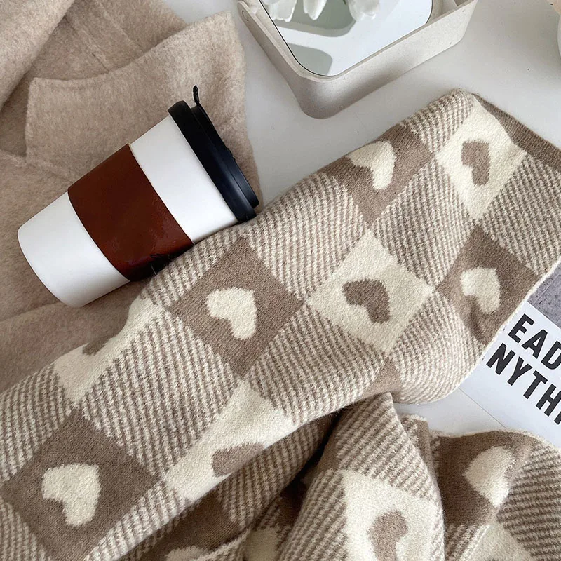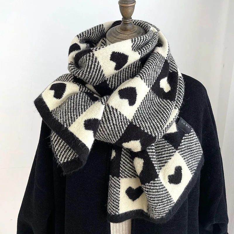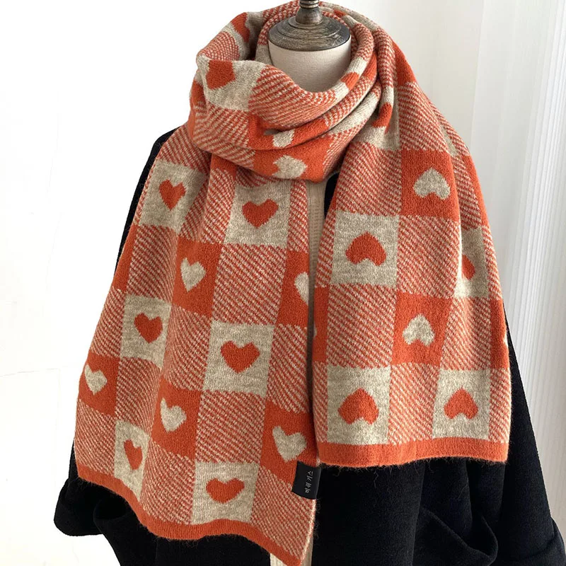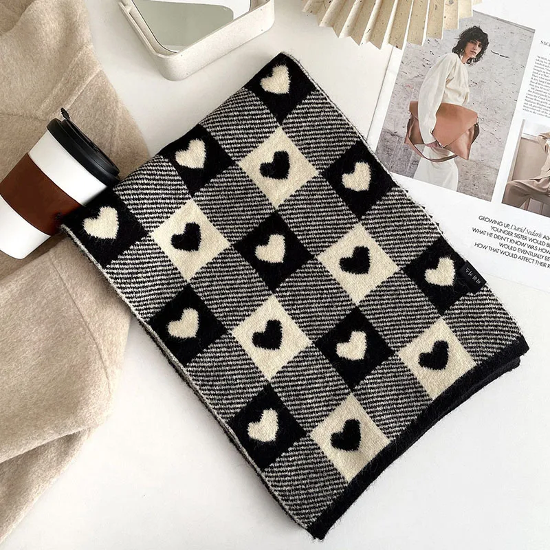 Корейские шарфы для женщин на осень и зиму утолщенный термовязаный шарф в клетку в виде сердца шарф длинный размер теплые шарфы подарки
