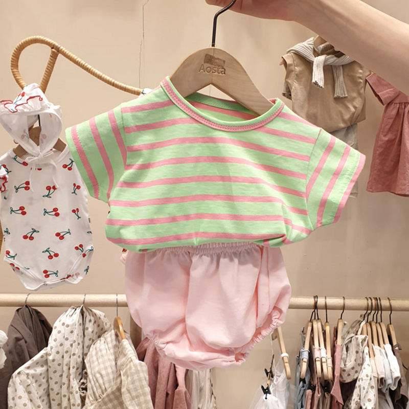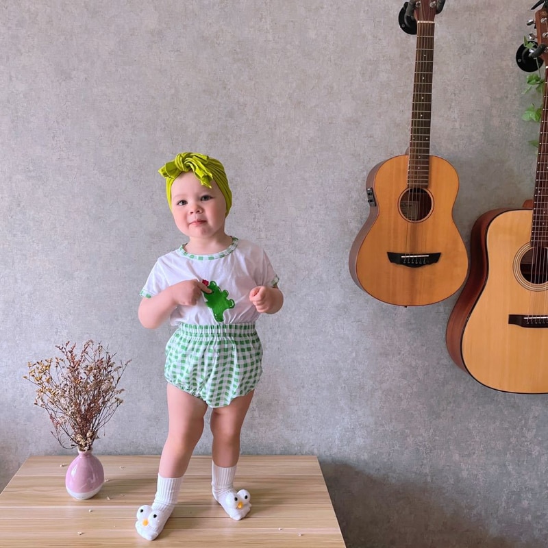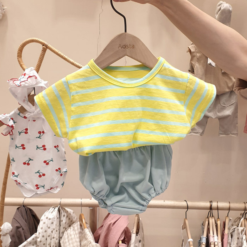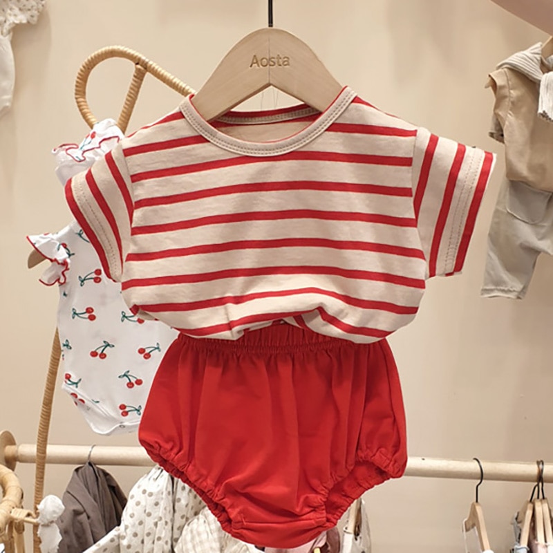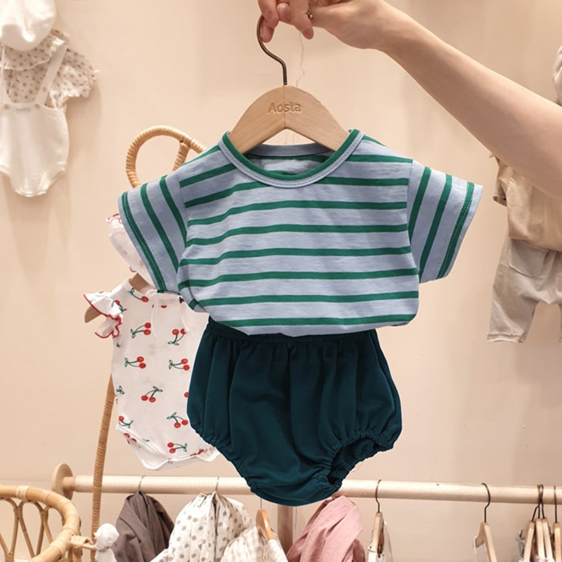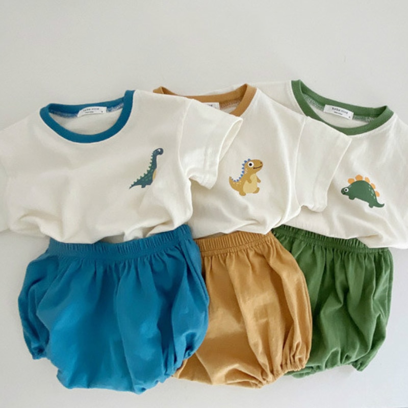 Корейский хлопковый комплект одежды для малышей, футболка с мультяшными динозаврами, короткие штаны, летняя одежда для мальчиков