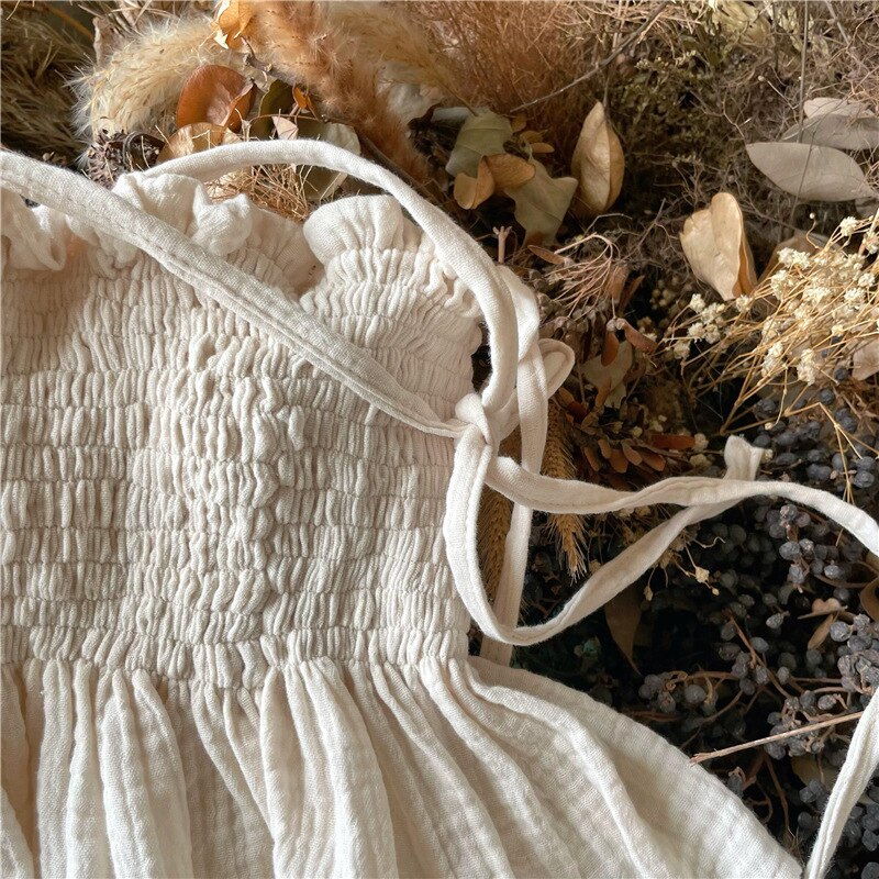 Корейский комплект детской одежды для девочек, летние топы на бретельках с галстуком и широкими штанинами из органического хлопка, одежда для маленьких девочек