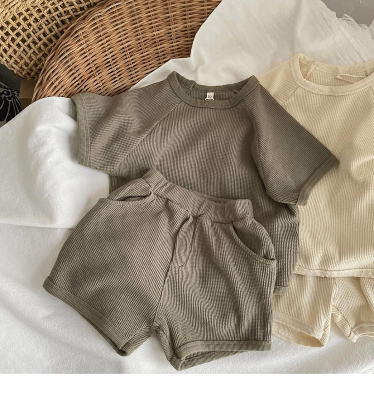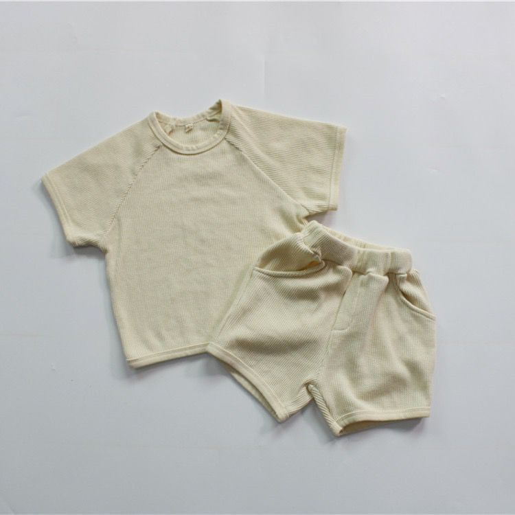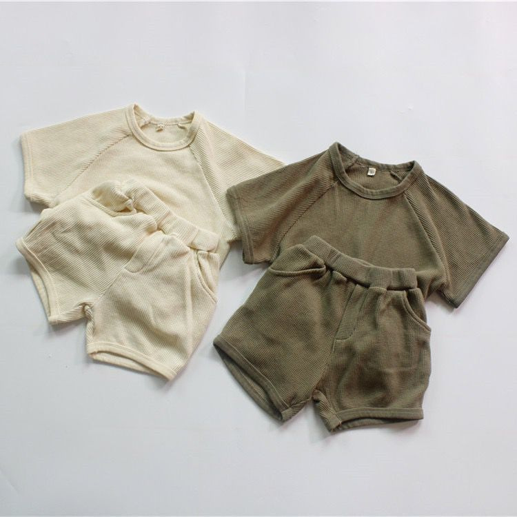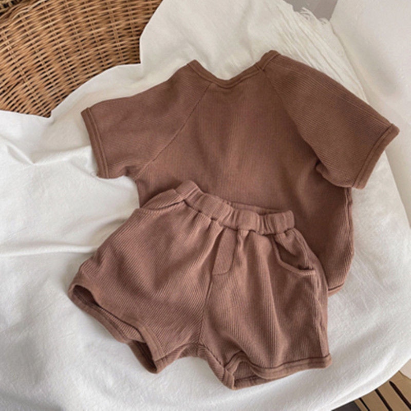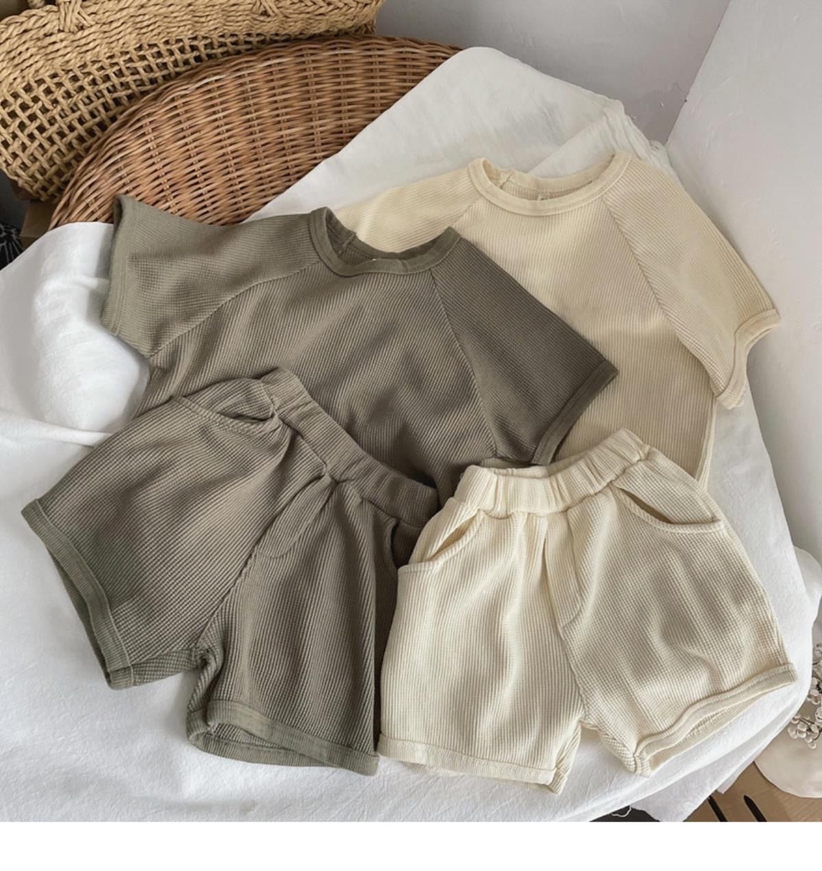 Корейский комплект одежды для мальчиков, летний комплект одежды для маленьких девочек, детская верхняя одежда, топы и шорты из 2 предметов, повседневный комплект детской одежды