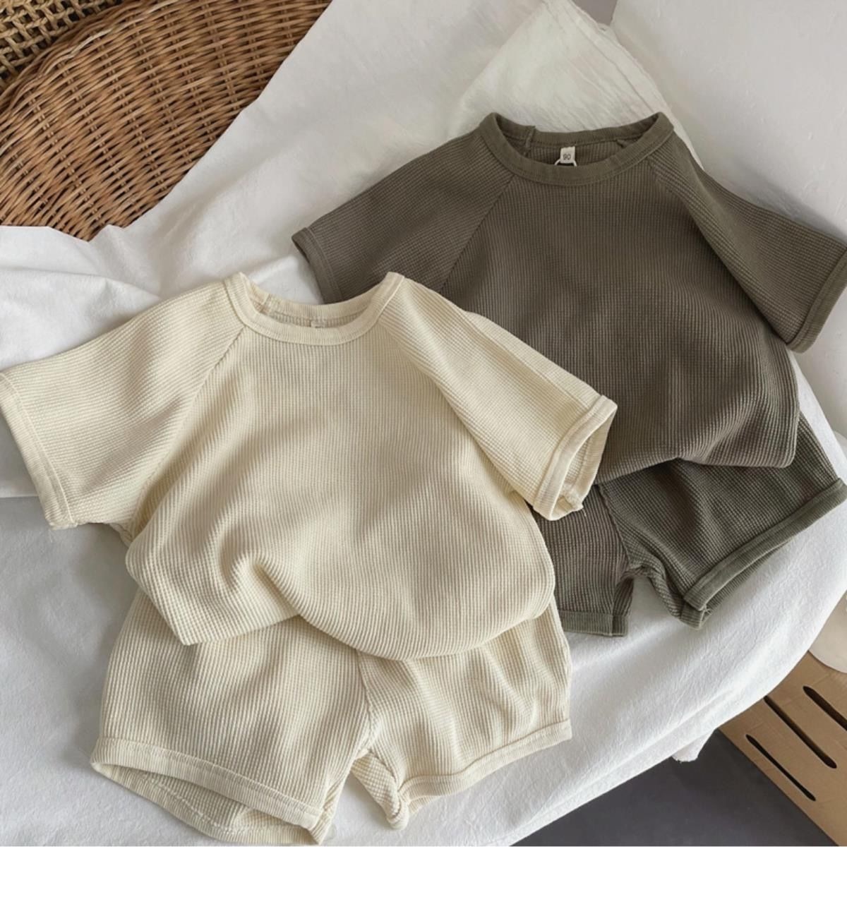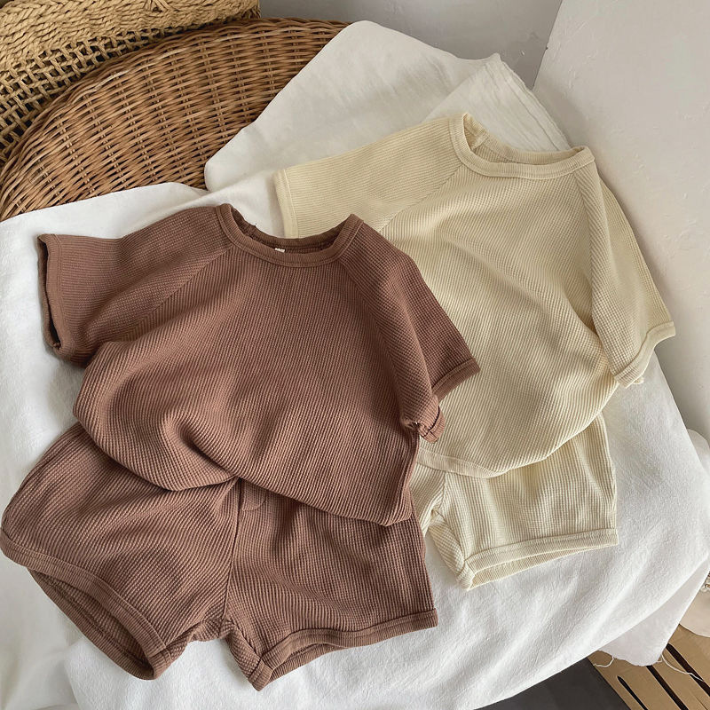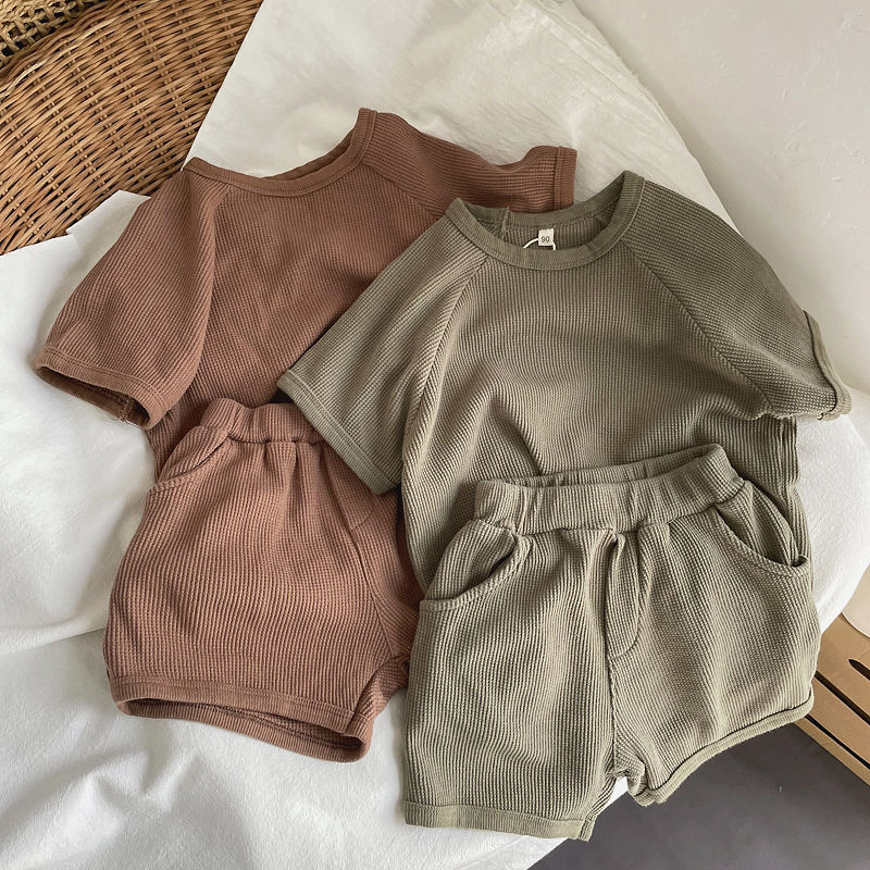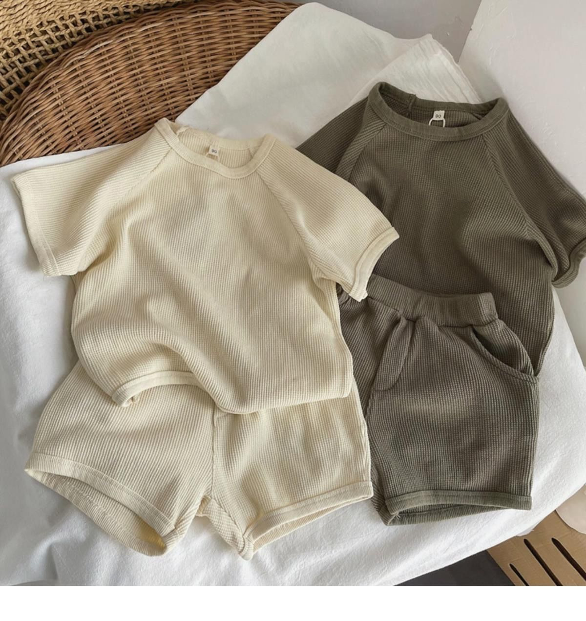 Корейский комплект одежды для мальчиков, летний комплект одежды для маленьких девочек, детская верхняя одежда, топы и шорты из 2 предметов, повседневный комплект детской одежды