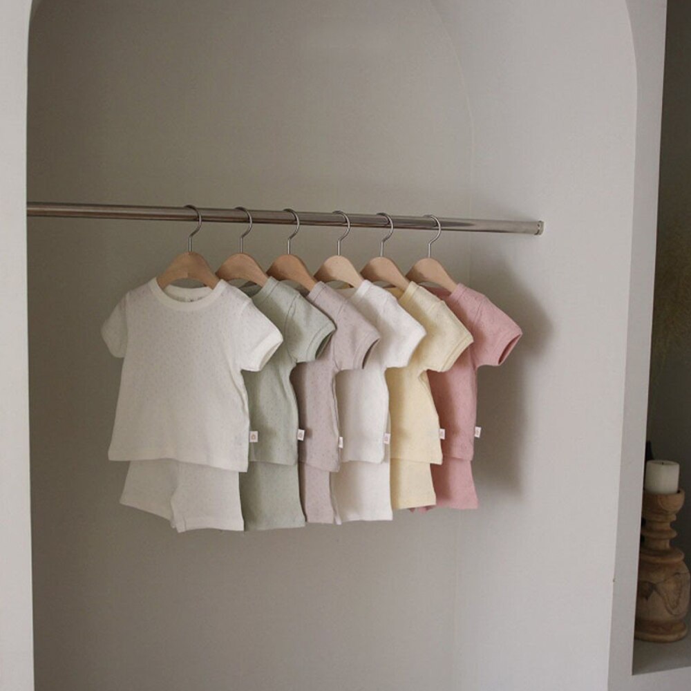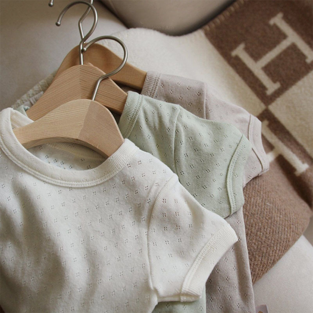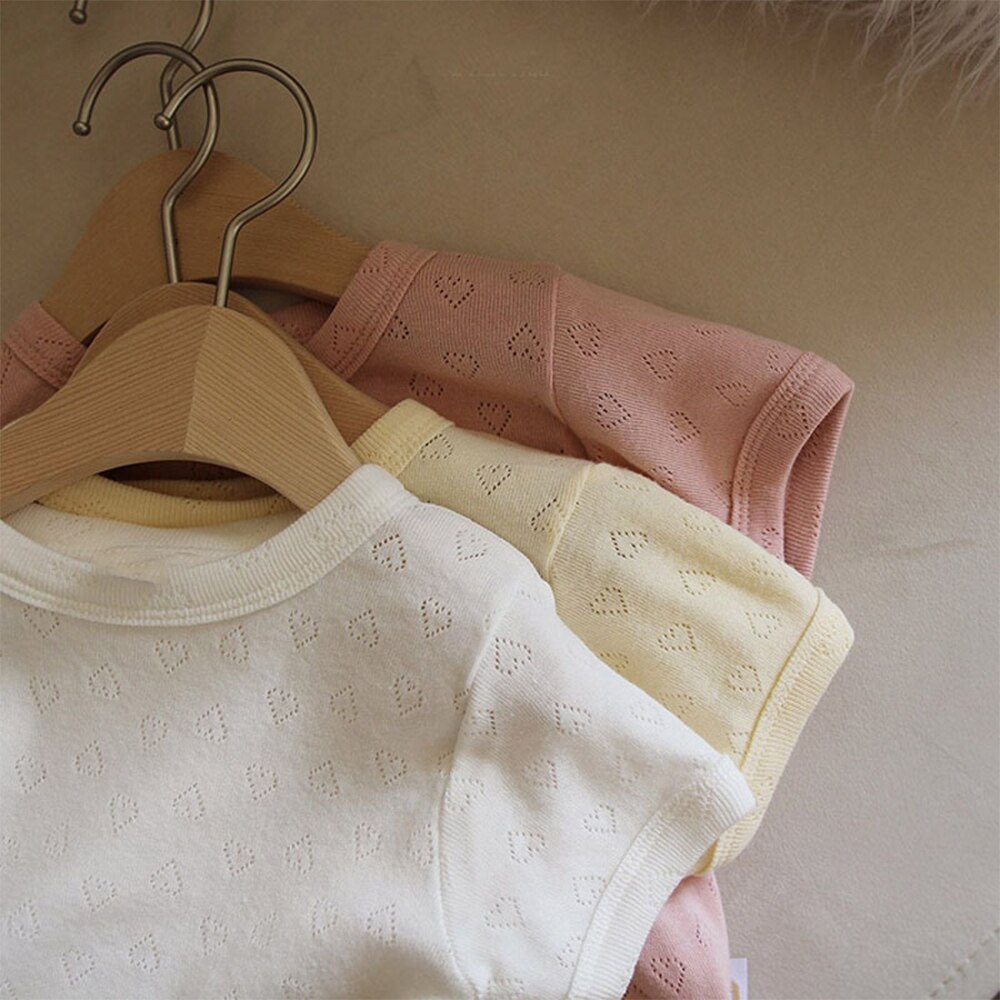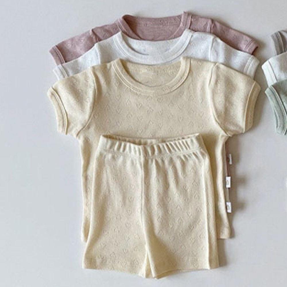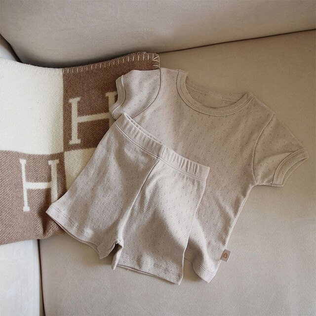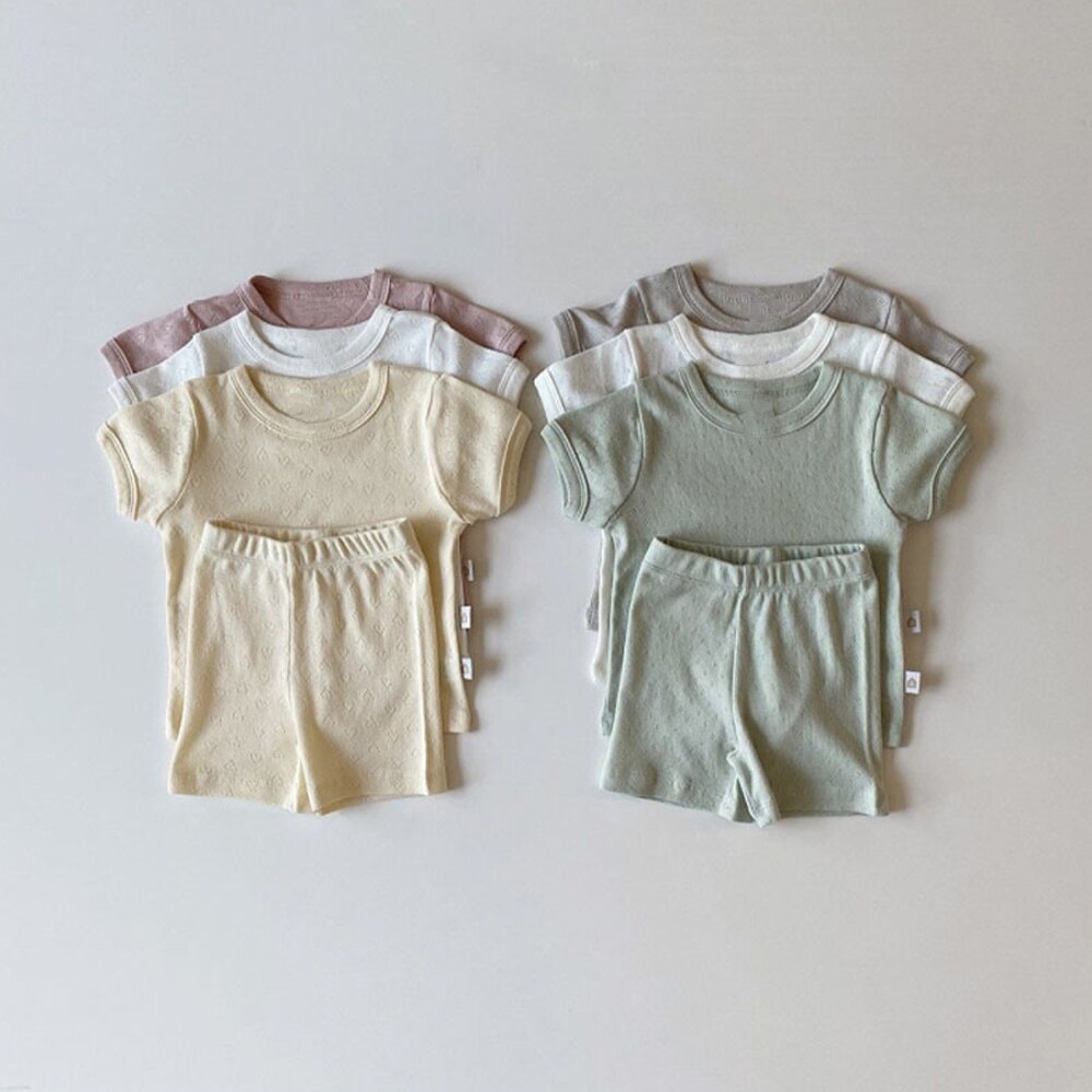 Корейский Летний комплект детской дышащей одежды, тонкий хлопковый Детский костюм из 2 предметов с коротким рукавом, топы с вырезами и шорты для мальчиков и девочек