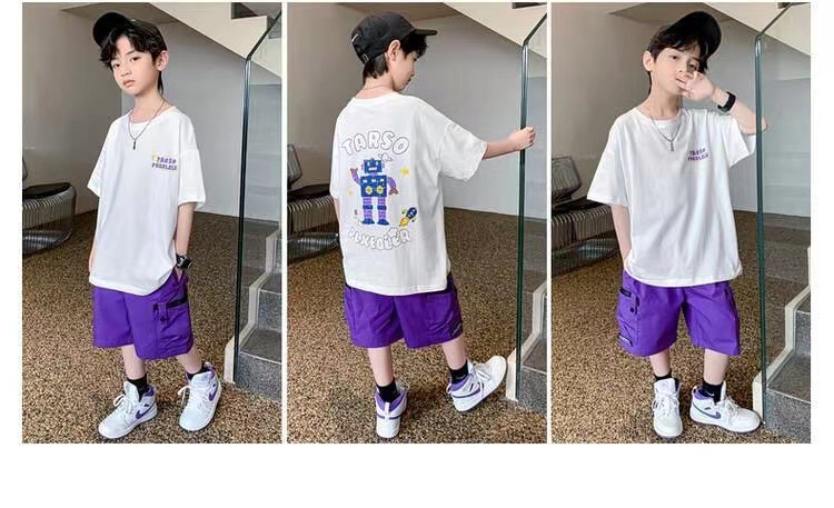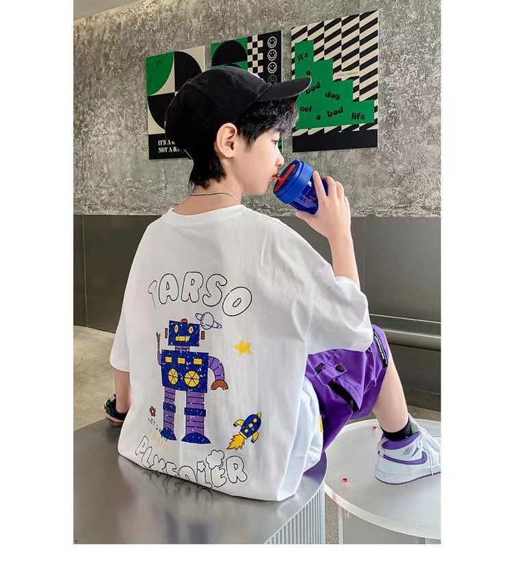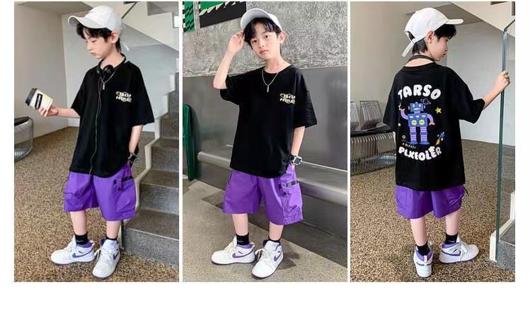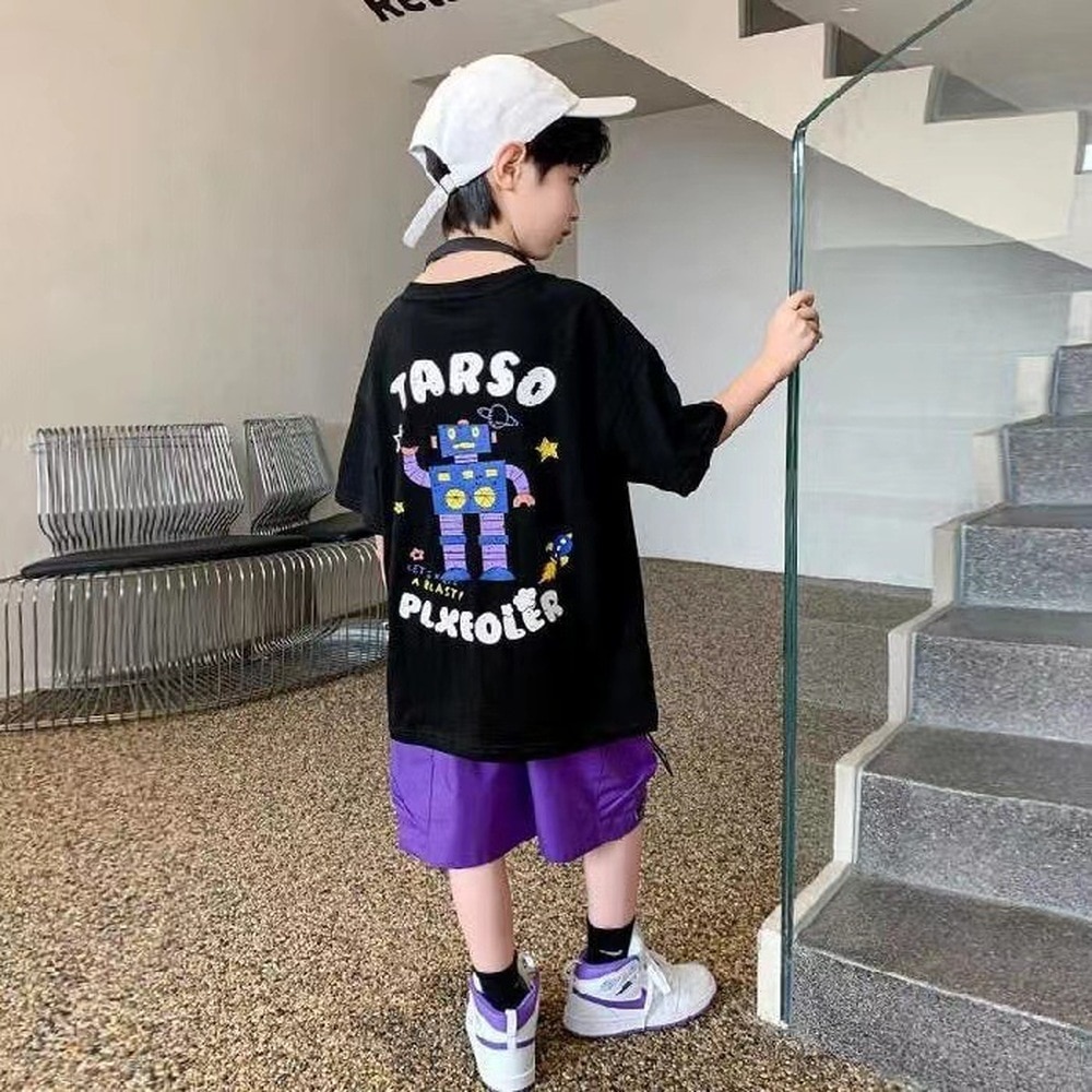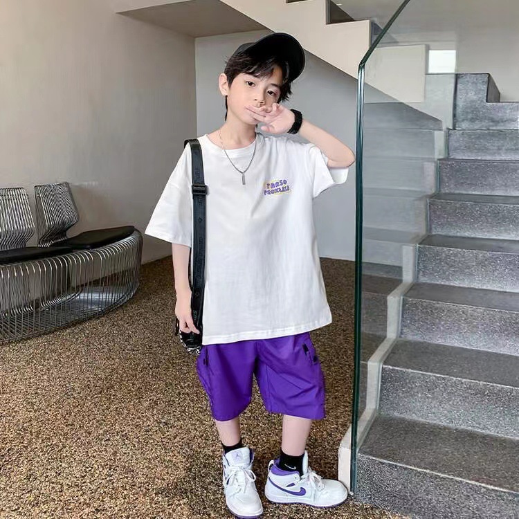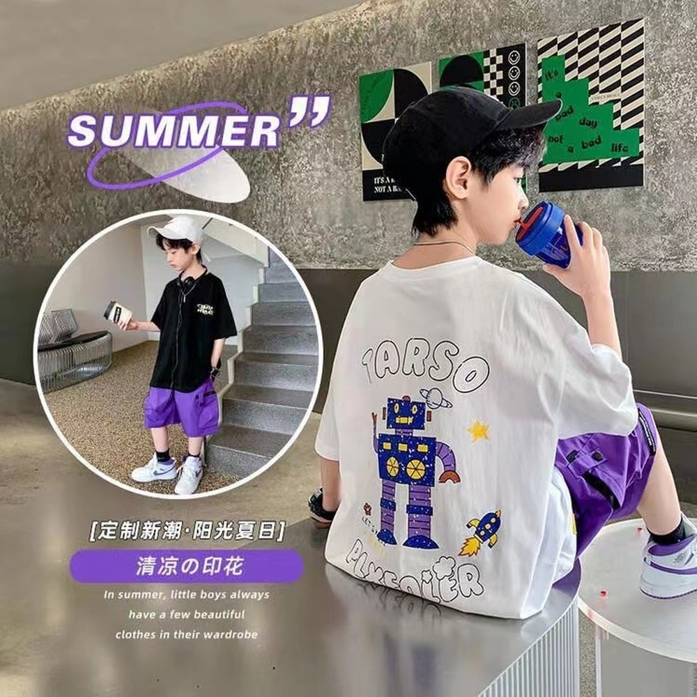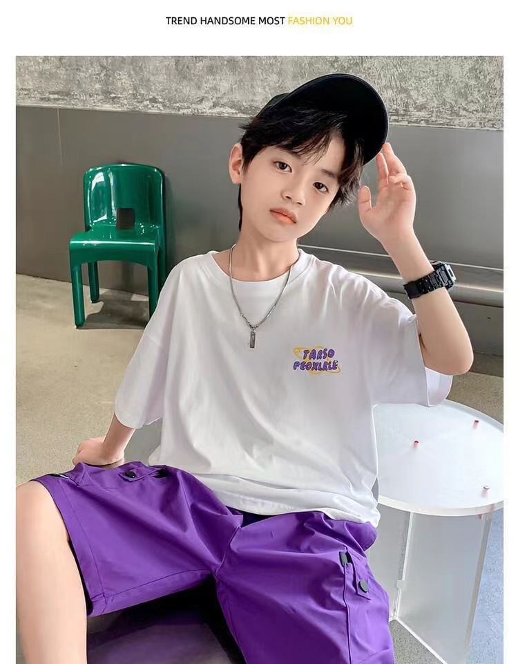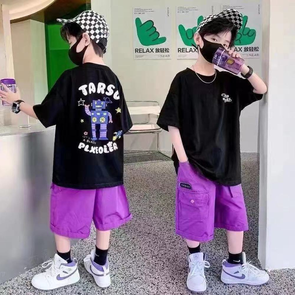 Корейский стиль, комплект одежды для мальчиков-подростков 4, 6, 8, 10, 12 лет, лето 2023, с коротким рукавом + штаны, 2 шт., детская одежда, детская одежда
