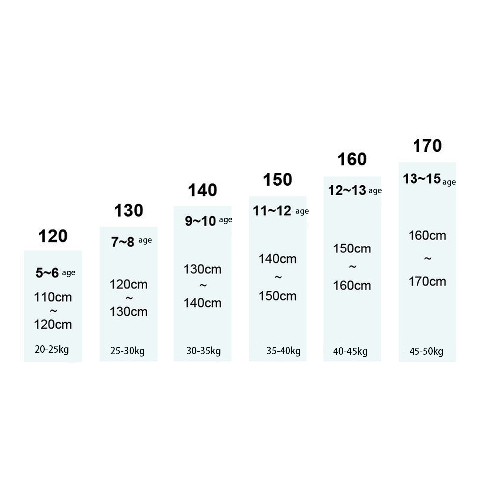 Размер 160 подходит для роста от 150 до 160 см и веса от 35 до 43 кг.