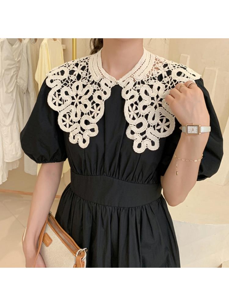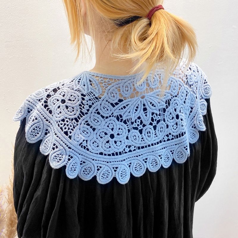 Корейский выдолбленный вязаный искусственный воротник шаль искусственный жемчуг шарф на пуговицах ожерелье сплошной цвет цветочные кружева блузка с лацканами мини-накидка