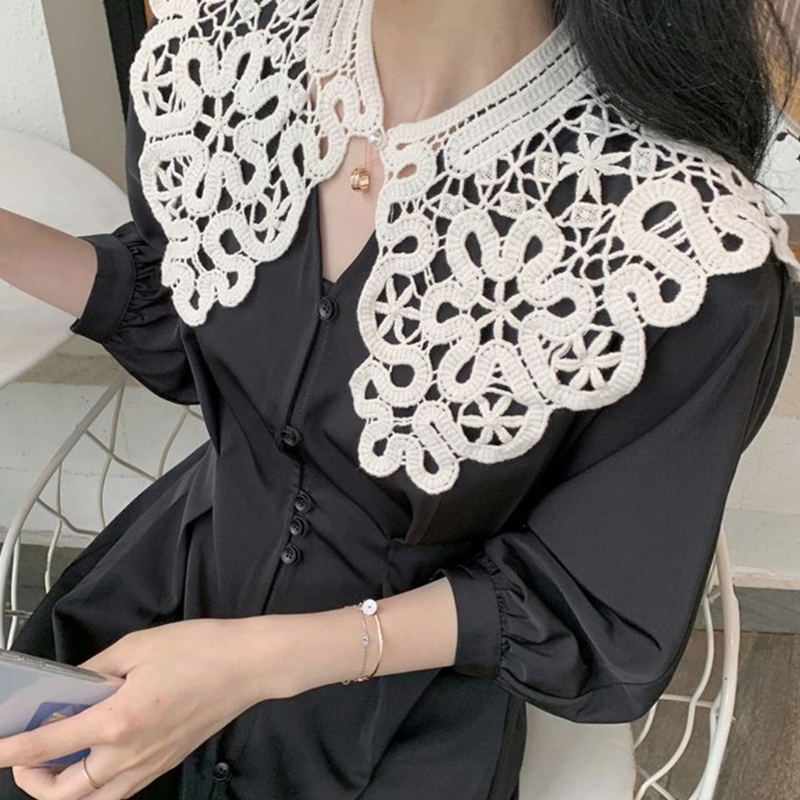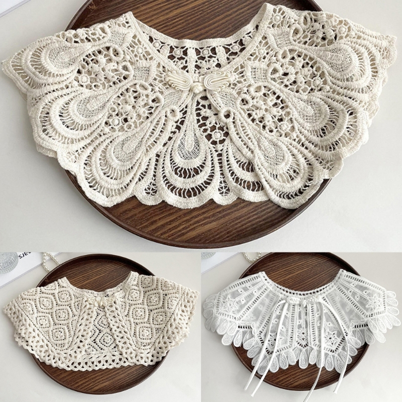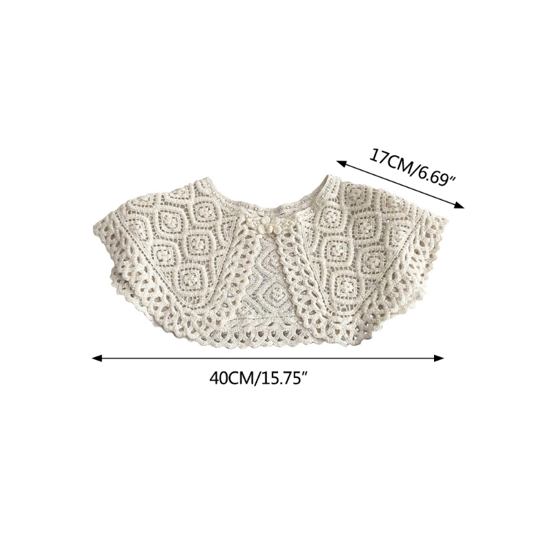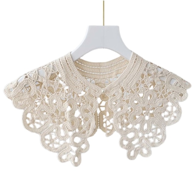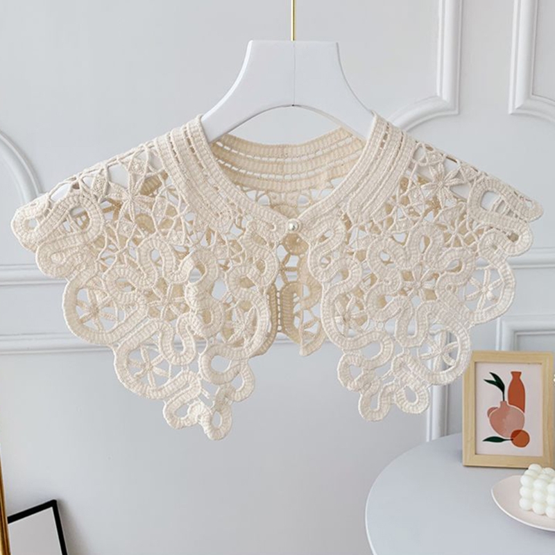 Корейский вязаный воротник с вырезами, шаль, искусственный жемчуг, пуговицы, шарф, ожерелье, однотонная Цветочная кружевная блузка с лацканами, мини-накидка