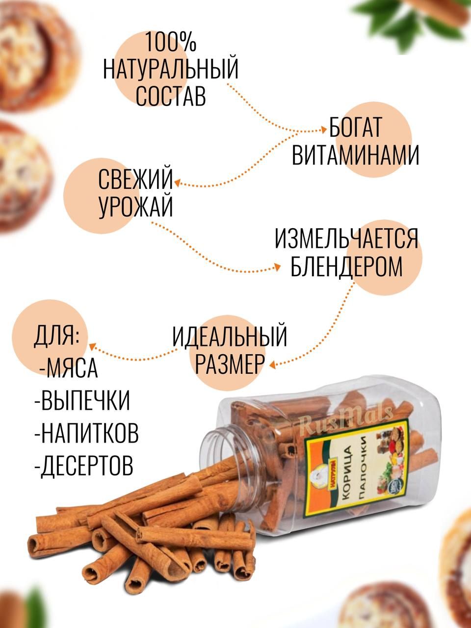Описание: Корица, обладает приятным пряным ароматом, используются для добавления в булочки, печенья, рулеты и т.д. Также корица палочки используется для приготовления различных напитков таких как: кофе, чай и для глинтвейна. Специя придает блюдам изысканный пикантный вкус.