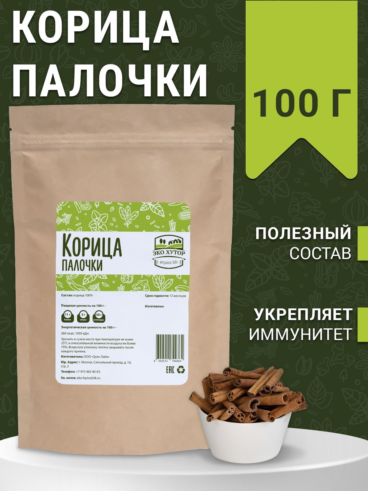 Описание: Палочки корицы представляют собой высушенные кусочки коры дерева. Корица обрела свою популярность не только благодаря изысканному аромату и вкусу, но и благодаря своим уникальным целительным свойствам. Способ употребления: добавлять в кондитерские изделия, напитки и другие блюда по вкусу.