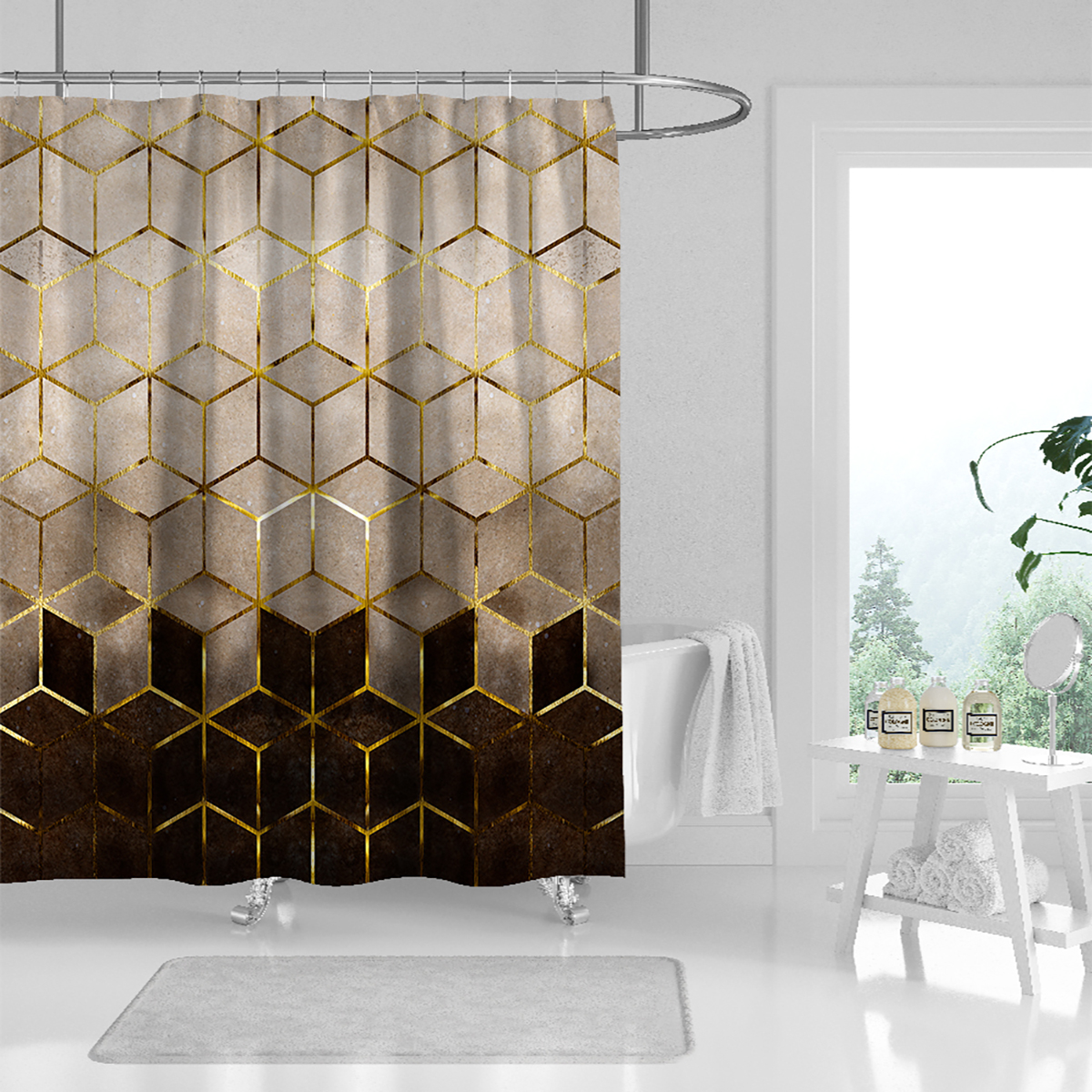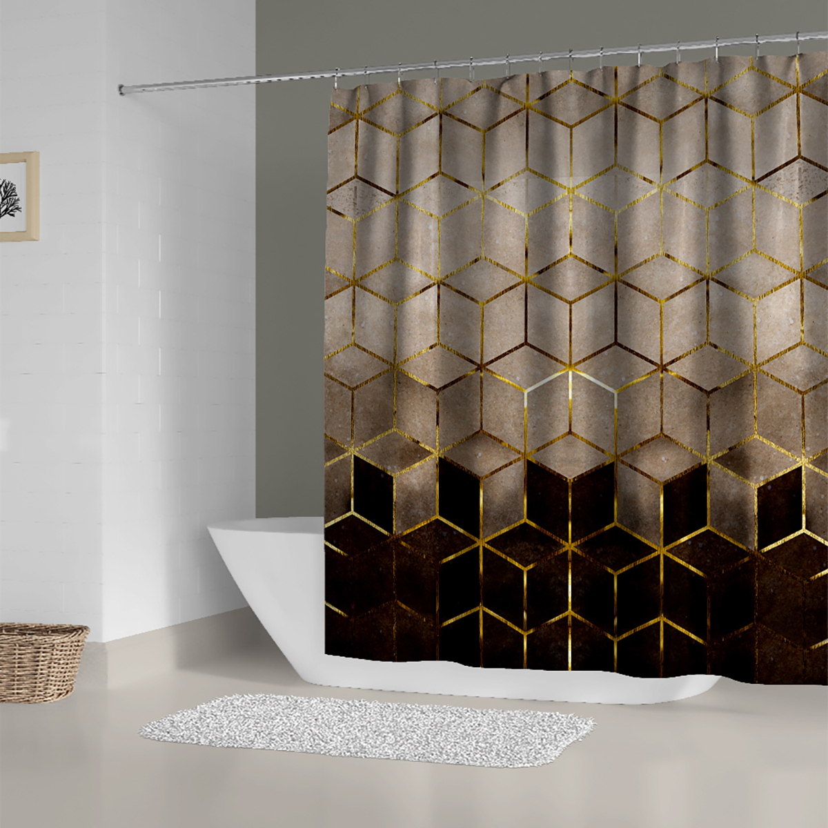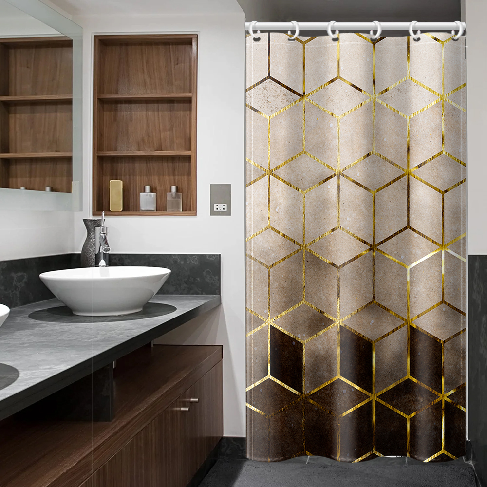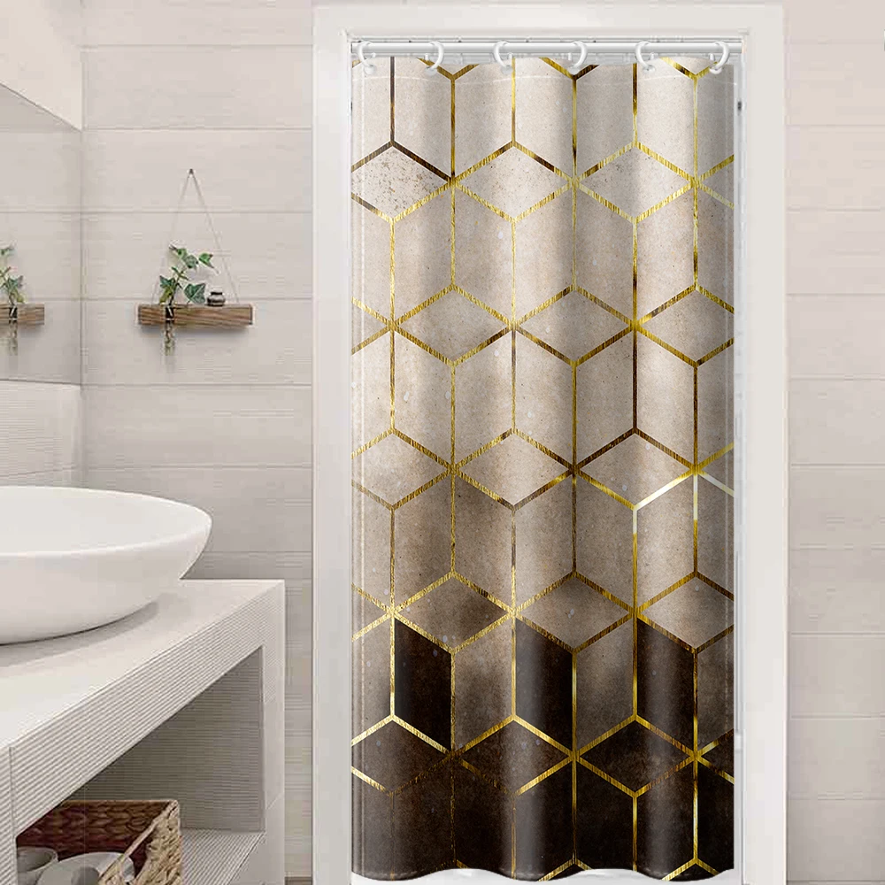 Коричневая сетчатая душевая занавеска с Сотами, водонепроницаемая декоративная занавеска для ванной с принтом и пластиковым крючком