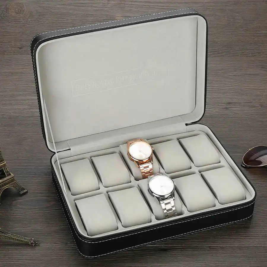 Коробка для часов, 10 ячеек, коробка для хранения часов, органайзер на молнии для путешествий